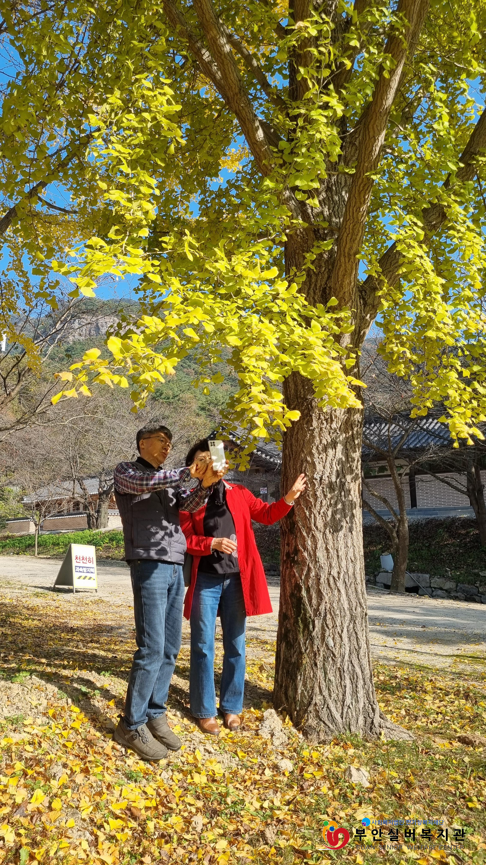 11월 내소사는 전국 명소답게 평일인데도 관광객들로 붐빕니다. 가을 나들이로 들뜬 사람들 속에서 사진반 어르신들이 제각각 사진을 찍습니다. 하늘을 찌를 듯 길게 뻗은 전나무가 주인공이 되기도 하고, 샛노란 물이 절정에 이른 은행나무가 주인공이 되기도 합니다. 사진을 찍는 어르신들이 믿음직스러웠는지 더러는 단체 사진을 찍어달라는 관광객들의 부탁에도 흔쾌히 책임을 맡습니다.