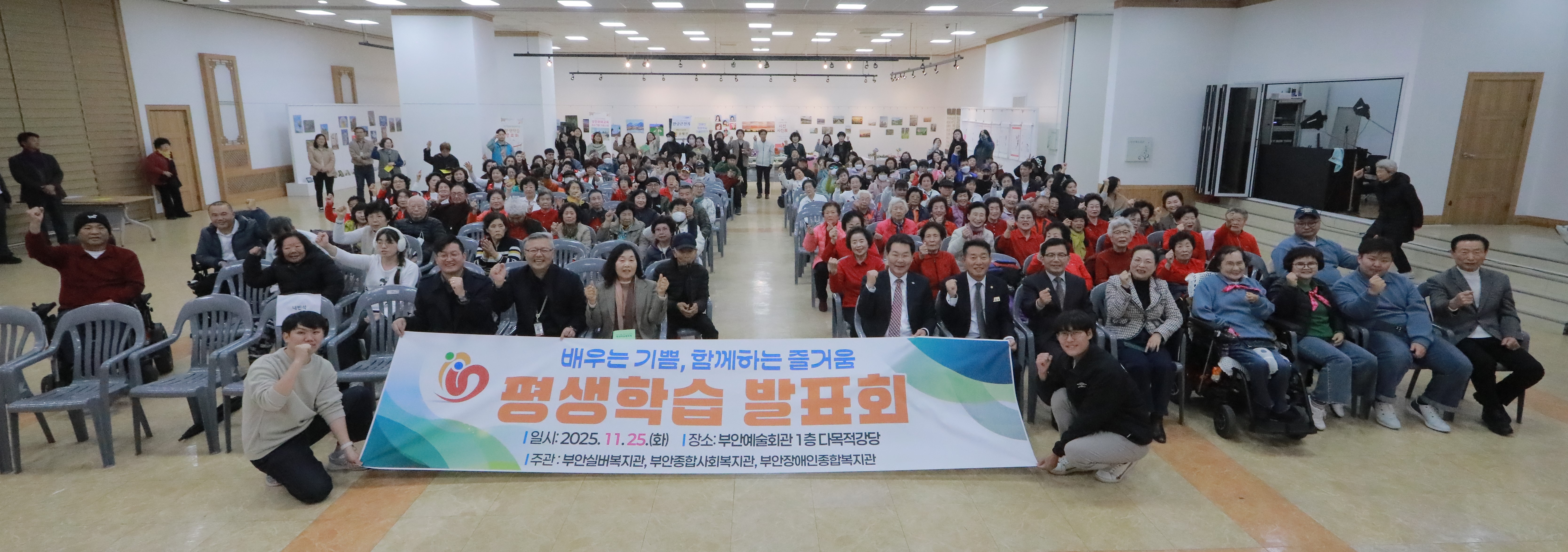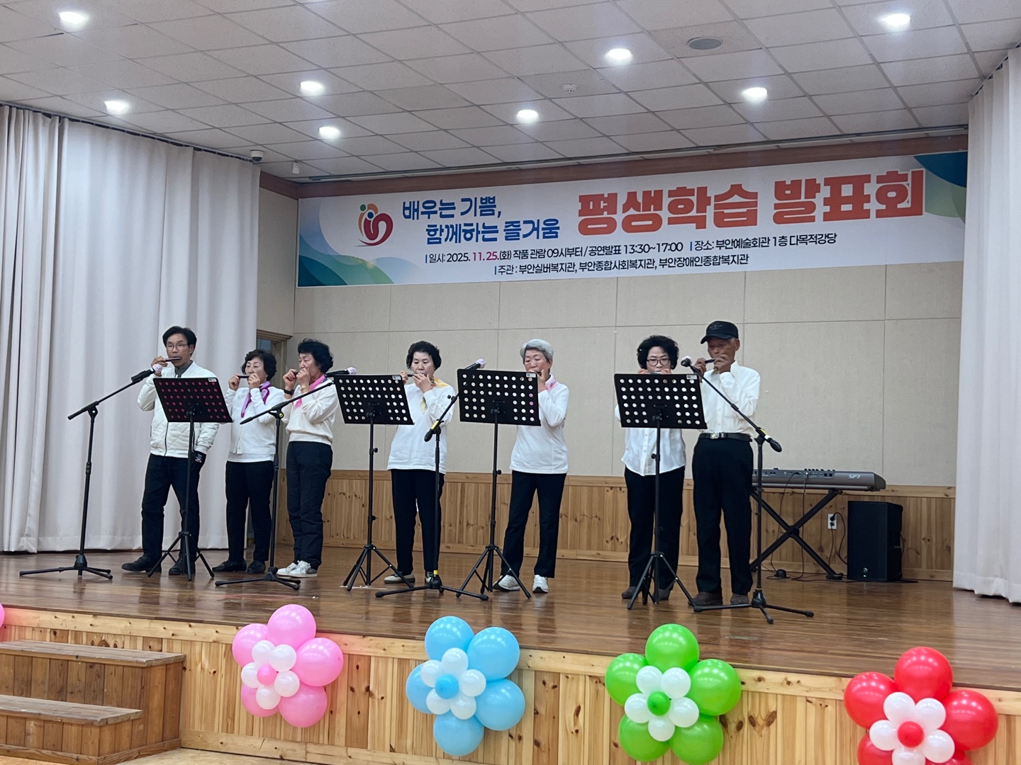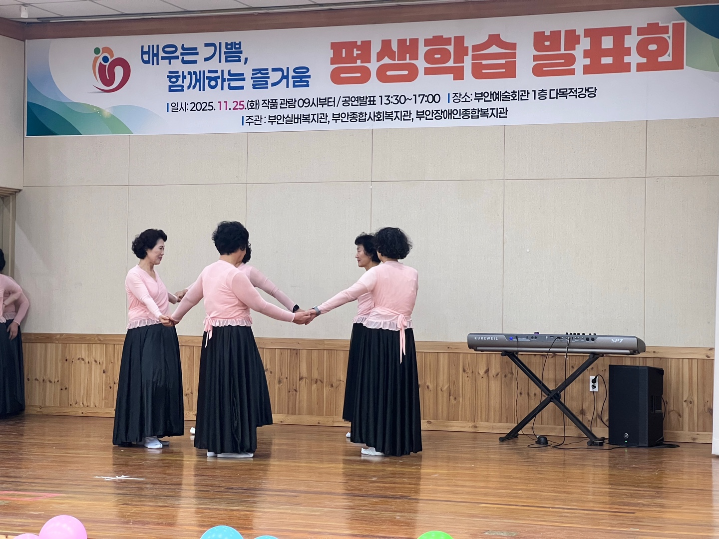 부안실버복지관 - 부안복지관이 공동으로 주관하는 '배우는 기쁨, 함께하는 즐거움 2025년 평생학습 발표회'를 11월 25일 부안군 예술회관 1층 다목적 강당에서 진행했습니다.
