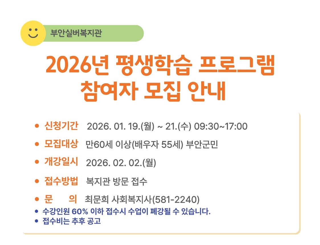 2026년 부안실버복지관 평생학습 참여자 모집