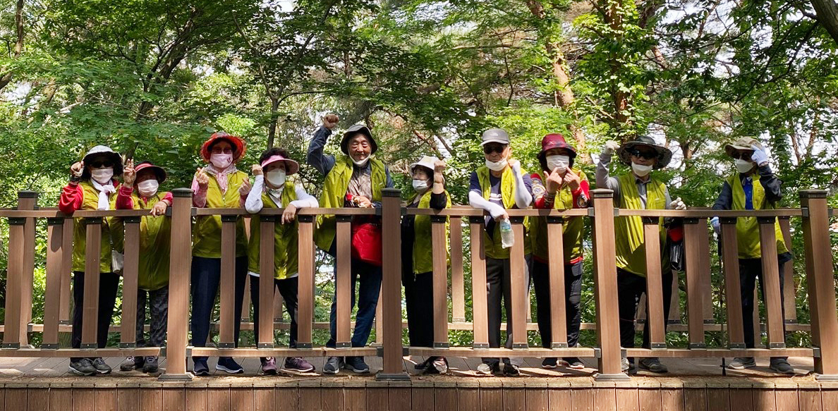 다 같이 걷자 동네 한 바퀴, 어르신 걷기 동아리가 4월을 시작으로 벌써 두 달이 지나 푸르른 6월이 되었습니다. 1팀과 2팀 각각 10인으로 동아리를 만들어 각 동아리별로 발대식도 하고, 이름도 만들고, 서로 소개도 하며 얼굴을 익히는 시간을 가졌습니다.