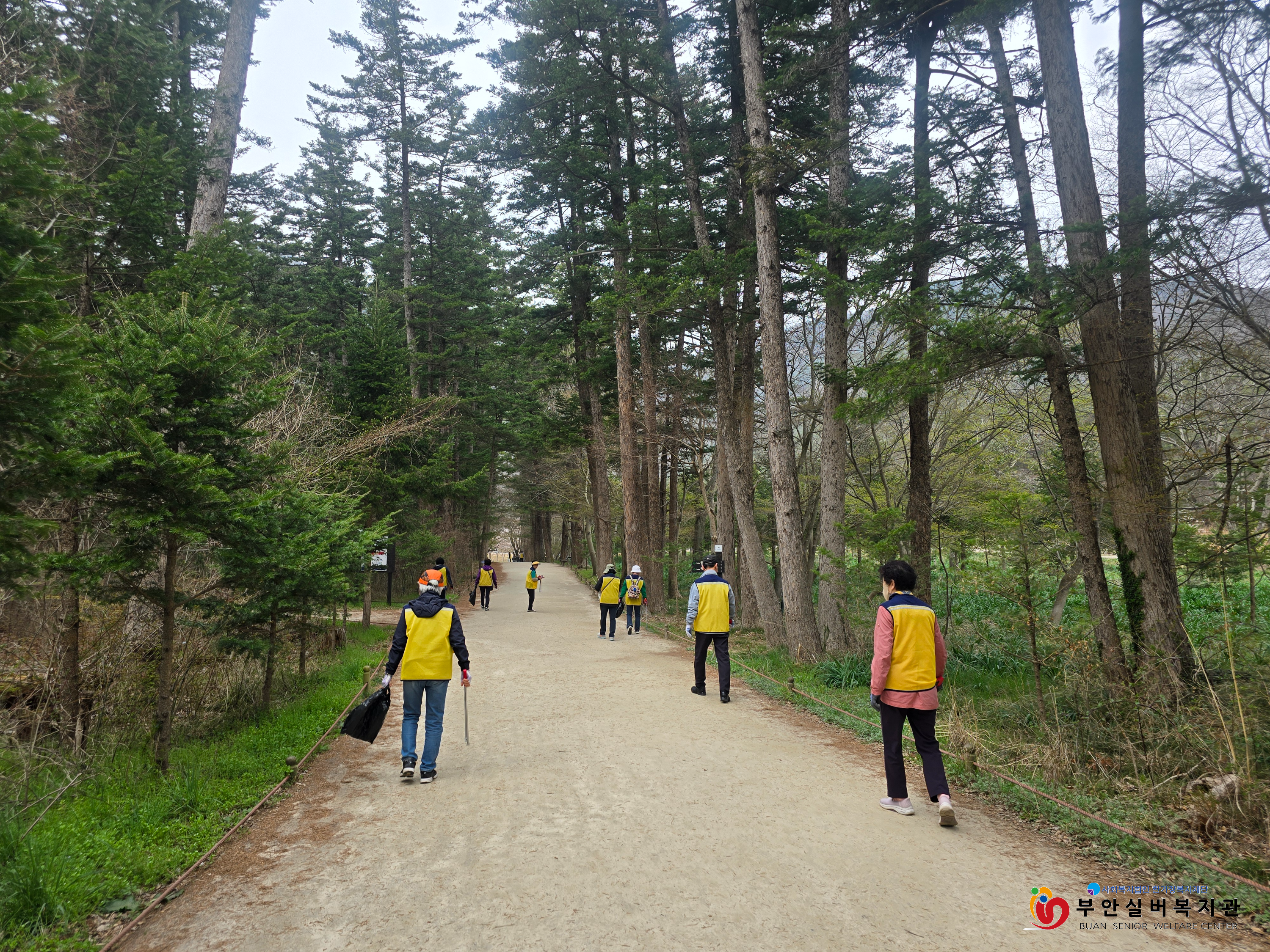 어르신들은 내소사 입구부터 대웅전까지 천천히 걸으며 쓰레기를 줍는 '플로깅' 활동을 진행했습니다.