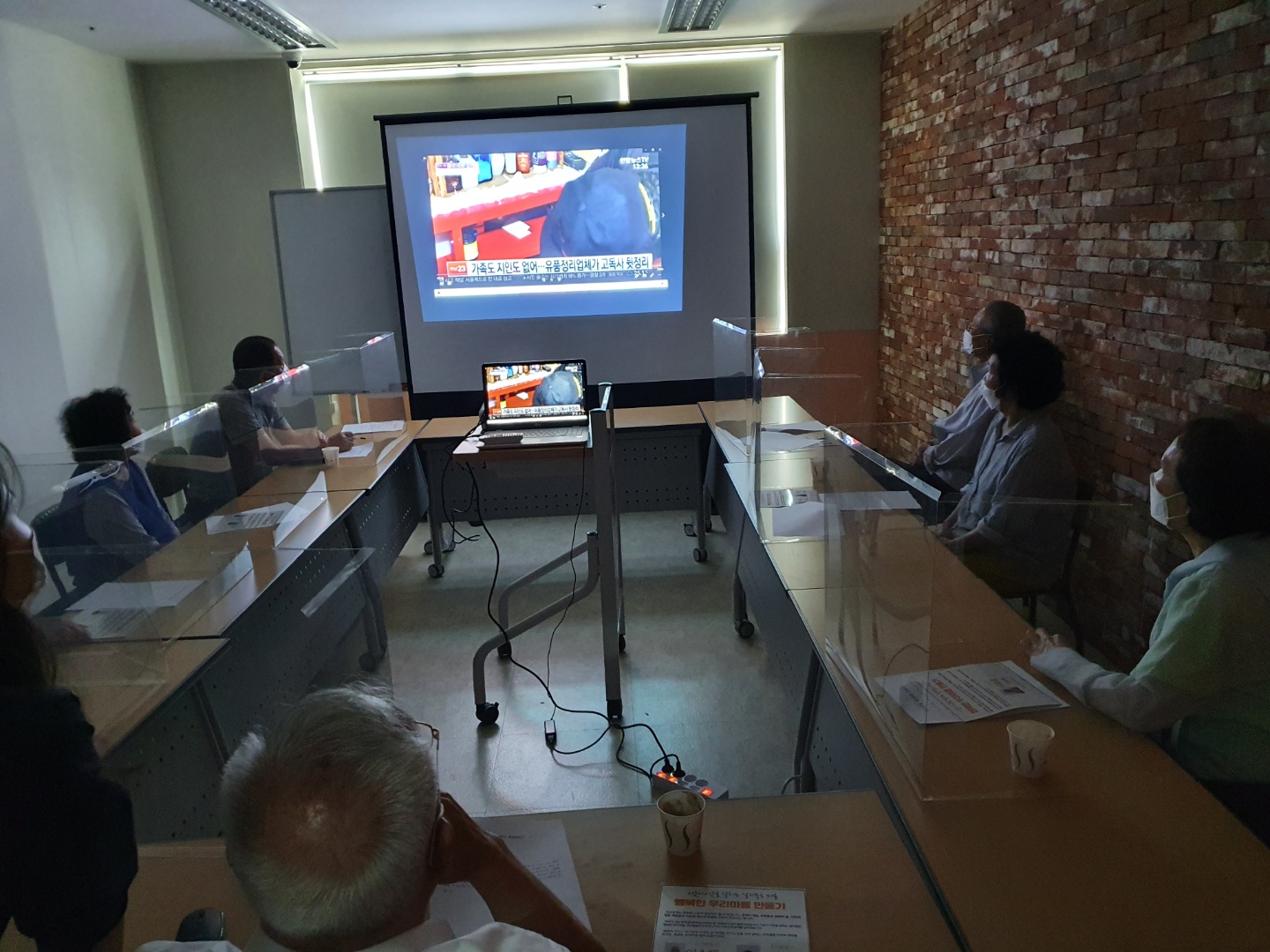 다음 안건으로는 다소 무거운 주제인 고독사의 문제점, 실제 사례, 해결을 위한 노력 등과 관련된 영상을 함께 보면서 함께 공감하는 시간을 가졌습니다. 복지서비스도 한계가 있다는 부분을 함께 인지하고 이웃관계망의 예방적 측면을 함께 구축할 수 있도록 주민활동가로 좀 더 많은 주민들이 함께 해 주실 것을 제안드렸습니다. 경기도 시흥의 실버주택의 영상을 시청하였습니다. 이웃들과 더불어 사는 어르신들의 모습을 보면서, 우리도 충분히 이웃들과 소통하고 활기찬 마을을 만들 수 있겠다는 기대를 가질 수 있었습니다. 우리마을 주민회의의 취지를 공감할 수 있는 시간이 되었습니다.