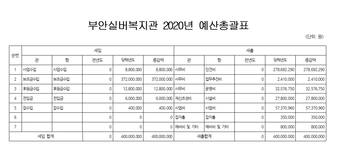 | 부안실버복지관 2020년 결산공고 (0) | 2021.03.31 |