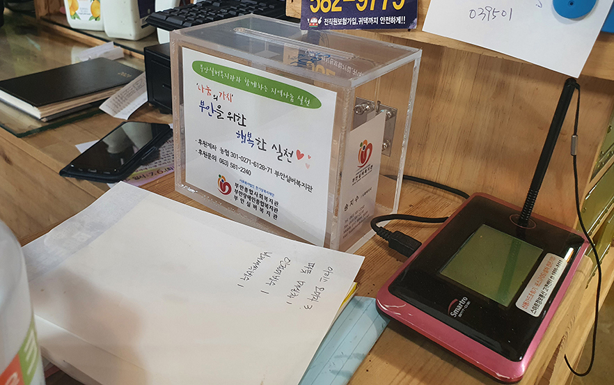 지역사회 기부문화 확산을 위한 모금함이 설치되었습니다.