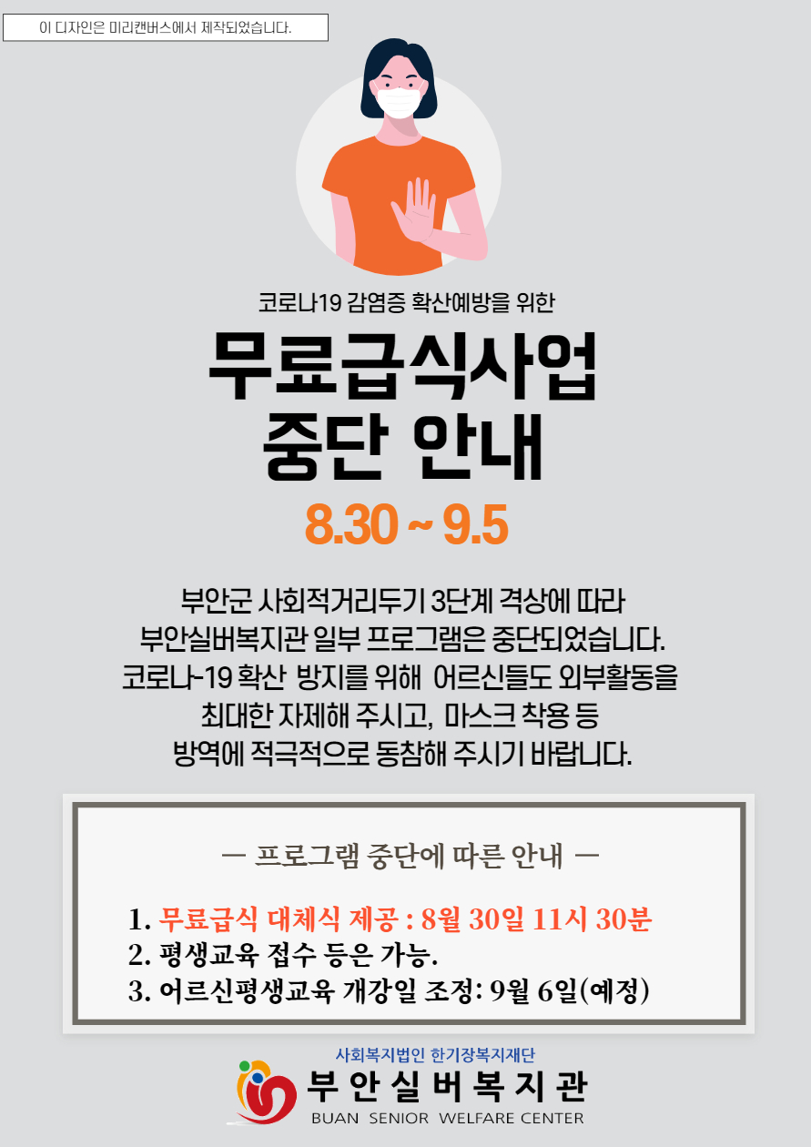 | 부안실버복지관 운영 재개 안내 (0) | 2021.08.23 |