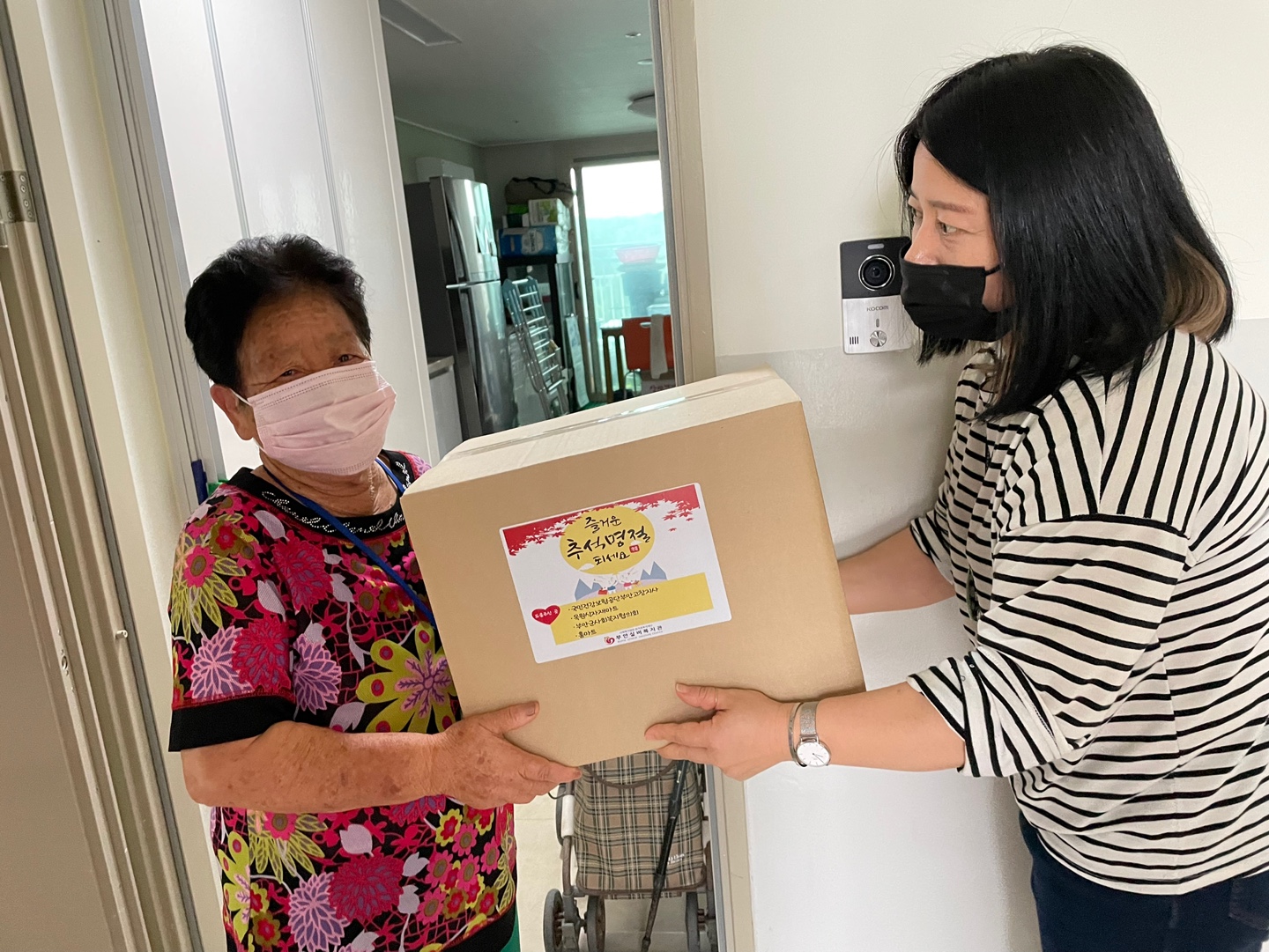 추석 명절을 맞이하여 저소득 어르신 100세대를 대상으로 명절 꾸러미를 전달했습니다.