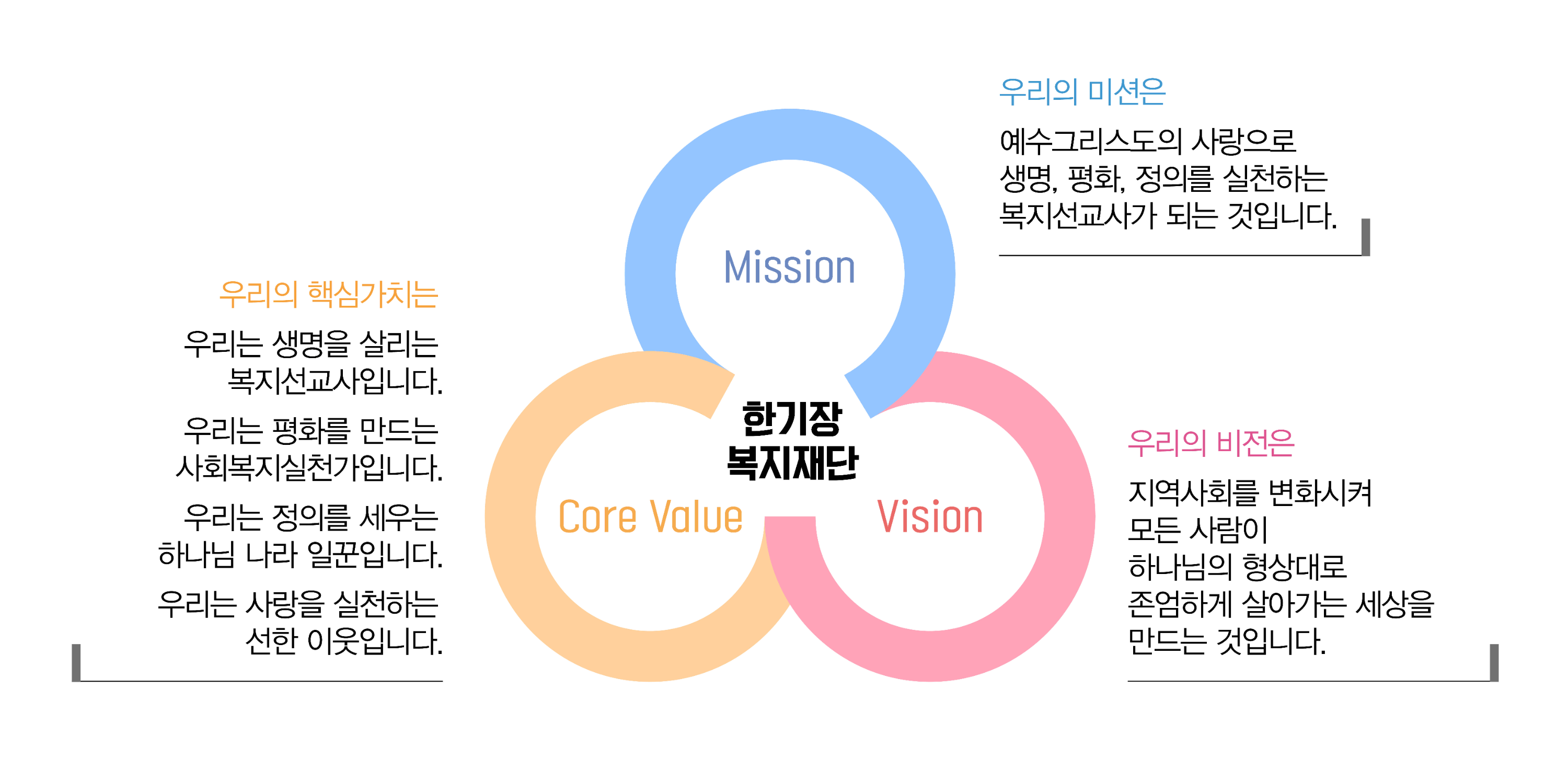 | 한기장복지재단은예수 그리스도의 가르침과 이웃사랑의 실천을 위해 1995년 6월 2일에 한국기독교장로회가 설립한 사회복지법인으로서, 정의로운 사회와 통일의 비전을 일궈가는 사회복지전문기관입니다. 특별히 “가난하고 소외된 이웃을 위해 일하시는 하나님과 함께한다”는 하나님의 사회봉사적 사명(Diakonia Mission)으로 국내외 120여개의 사회복지시설을 운영하고, 북한동포와 아시아 민중의 복지를 지원한다는 비전을 갖고 있습니다. 기독교 신앙에 기초하여 인간의 삶의 질을 높이고, 이를 위한 지역사회의 변화와 함께 사회 구성원 개개인의 삶의 갱신을 동시에 추구하는 통전적인 복지를 펼쳐 나가고 있습니다. 전국의 사회복지 종사자들과 함께 노숙인, 장애인, 노인, 다문화 가족, 어려움에 처한 여성 등을 위해 전국 16개 시도에 종합사회복지관, 장애인복지관, 노인복지관, 지역자활센터, 노인요양원 등 120여 개의 사회복지시설을 운영하고 있습니다. 또한 필리핀, 인도, 네팔 등 아시아의 가난한 개발도상국의 민중들을 위한 전문적인 사회복지사업과 북한을 위한 다양한 사업을 전개하고 있습니다. |