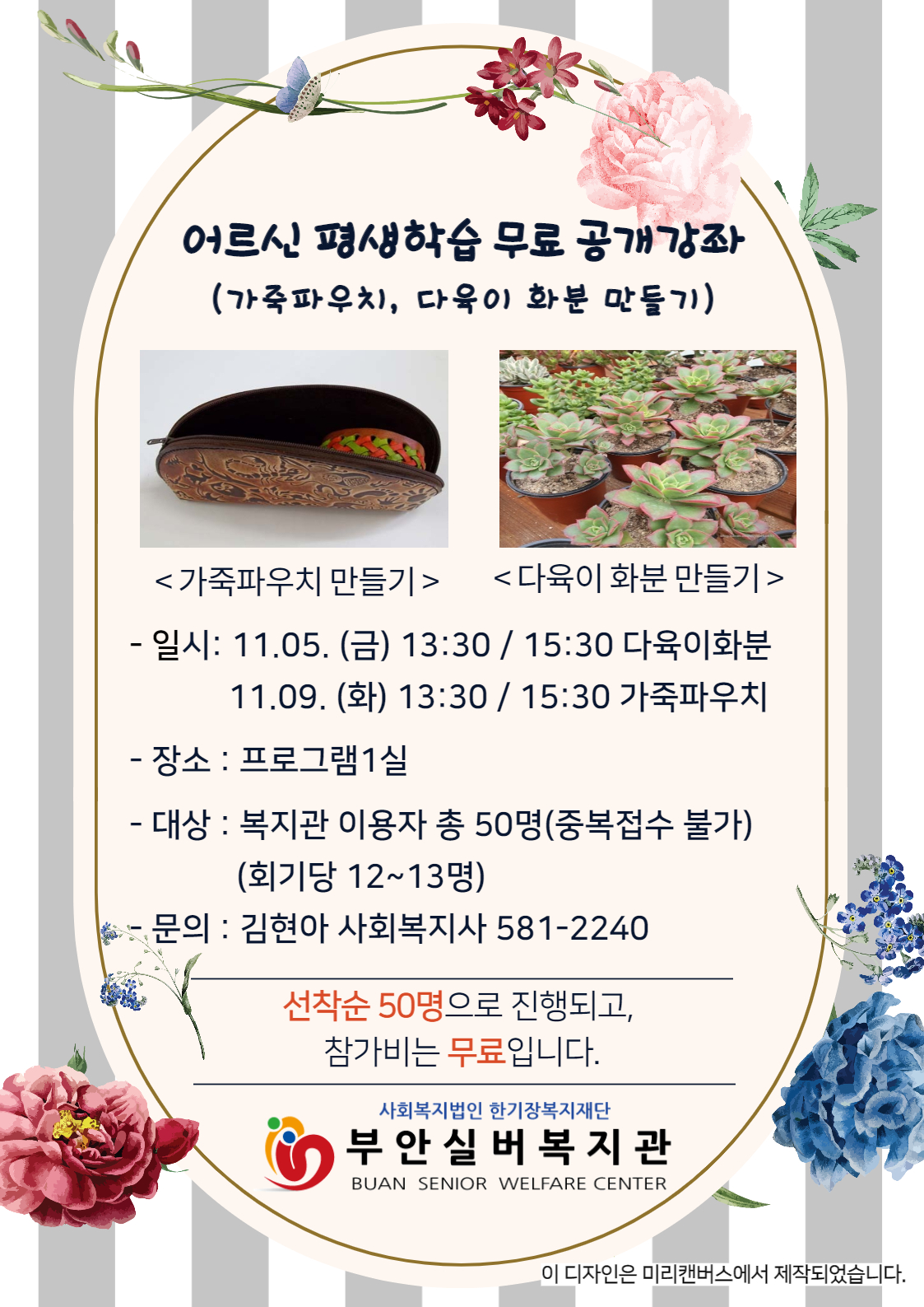 어르신 평생학습 무료 공개강좌 참여자 모집