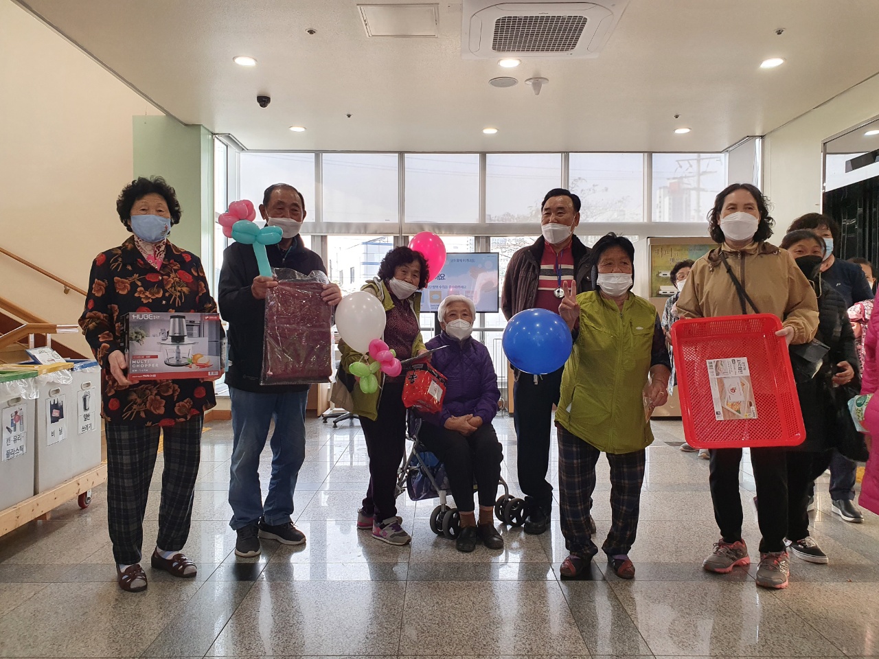 부안복지관에서는 실버복지관 이용 어르신들에게도 초대장을 보내주었습니다. 코로나-19 예방접종을 완료하신 서른분의 어르신들과 1시간 가량 부안복지관에서 준비해준 다양한 놀이를 함께 할 수 있었습니다. 아기자기한 게임들 하나하나 참여하시는 어르신들의 모습 속에서 많은 웃음이 오갔습니다. 부안복지관 직원들 한분 한분 너무 친절하다며 칭찬도 잊지 않으시고, 이렇게 나와서 활동하니 아픈지도 모르겠다며 웃음 가득한 하루를 보낼 수 있었습니다.