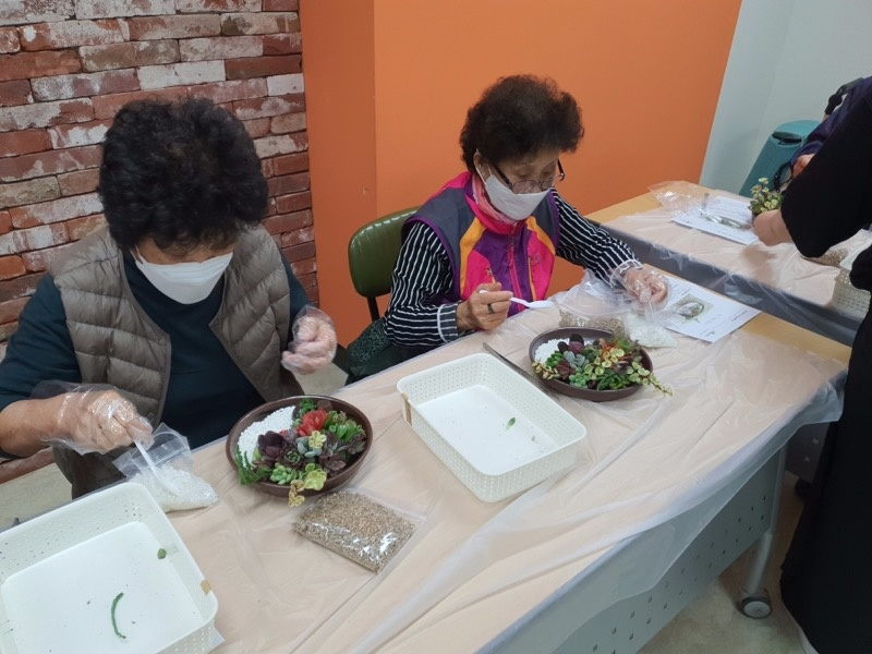 어르신 평생학습 공개강좌 <다육이 화분 만들기>를 진행하였습니다.