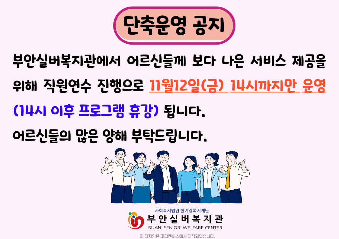 | 급식소 운영중단(18일~19일)안내 (0) | 2021.11.16 |
