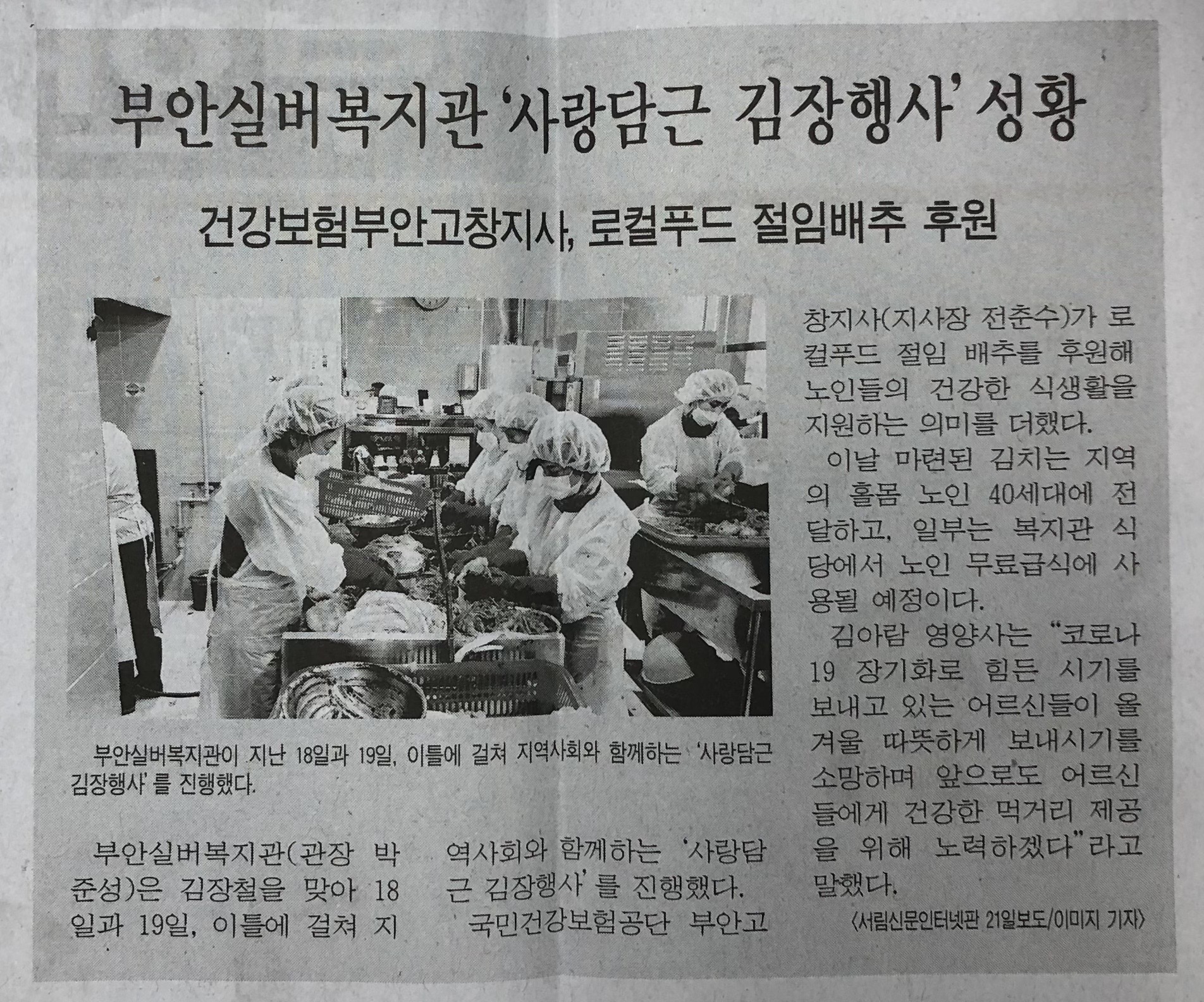 [언론보도] 부안실버복지관, ‘사랑담근 김장행사’ 진행