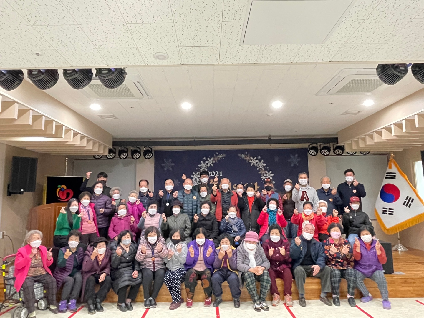 다음으로 복지관에서 한해 진행된 일들을 영상으로 준비하여 함께 나누었습니다. 프로그램 하나하나 활동 하나하나가 어르신들에게 또 하나의 추억으로 남았다고 말씀해 주셨습니다. 담당자는 내년에는 코로나가 어느정도 안정되어져서, 이런 활동들을 영상으로 준비할 때 분량이 두배, 세배로 늘었으면 좋겠다고 말씀드렸습니다.