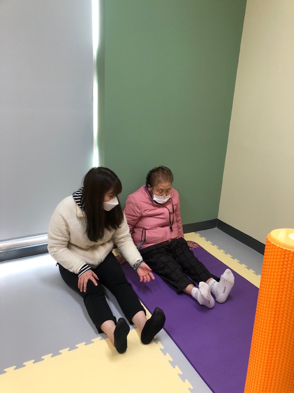 수업은 일주일에 한 번 진행되는데, 같이 운동하는 시간이 30분이라는 짧은 시간이어도 시간 맞춰 웃으면서 와주십니다. 처음 수업 진행할 때는 너무 아파서 웃는 얼굴을 보지 못했었는데, 회차가 더해질수록 웃는 얼굴을 자주 보여주셔서 담당자는 너무 큰 힘이 됩니다감사합니다.
