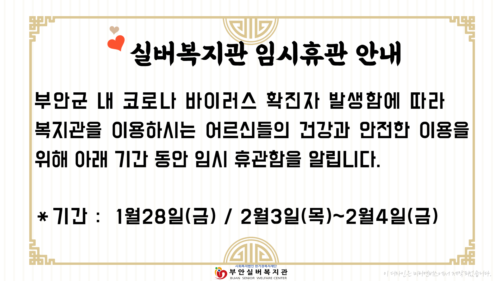 | 임시휴관 연장 안내 (0) | 2022.02.03 |