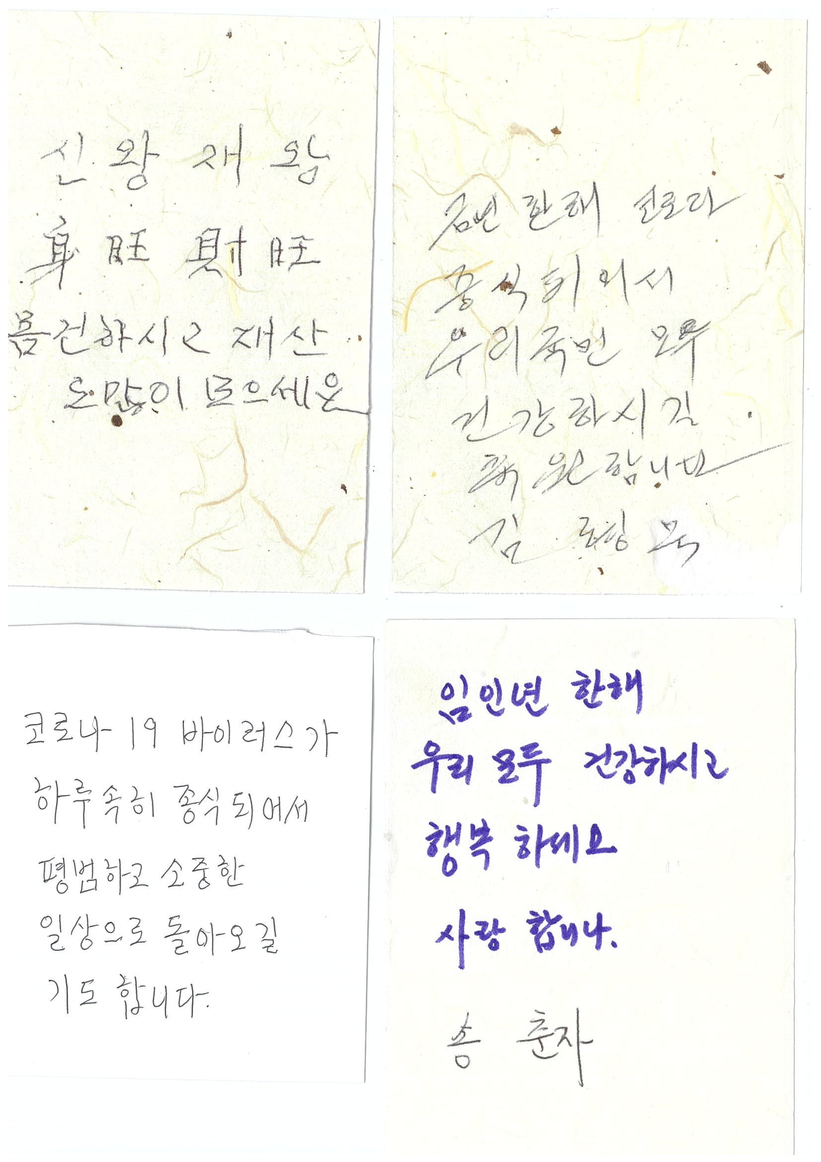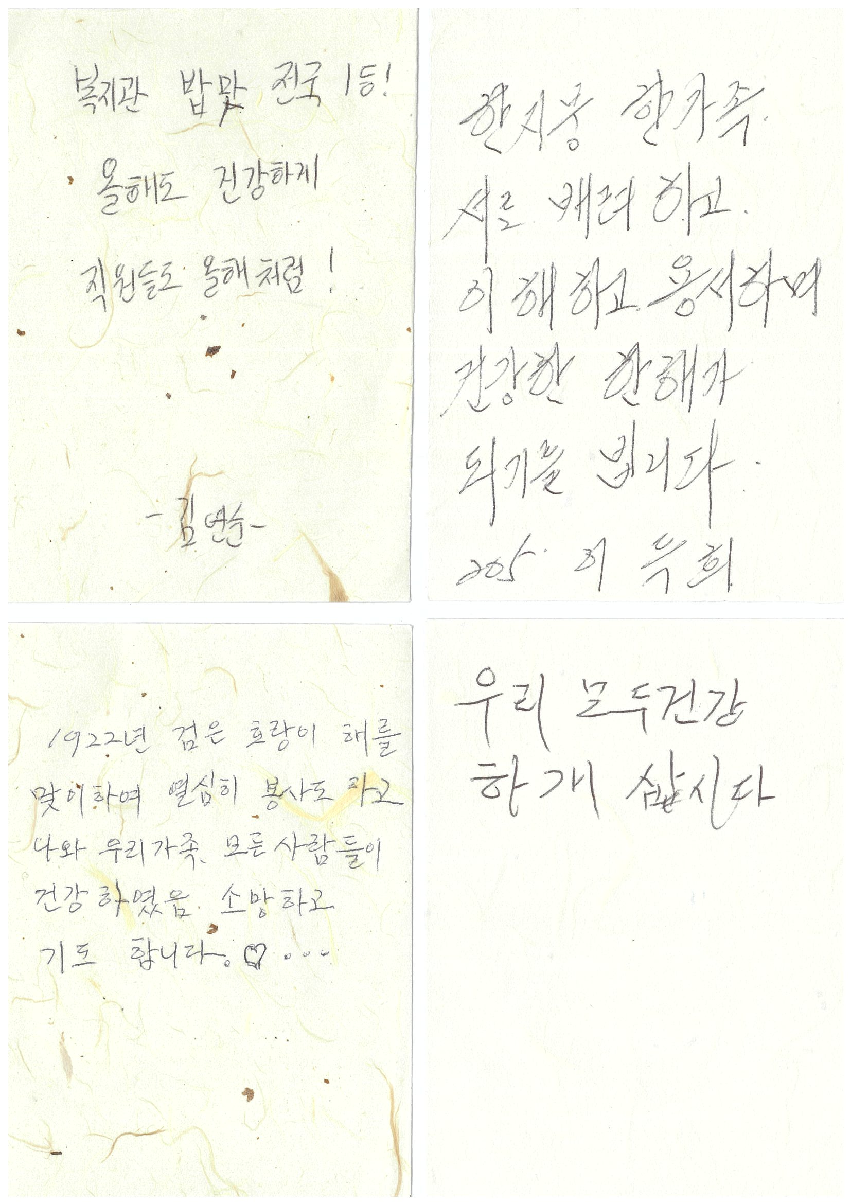 2022년 임인년을 맞이하여 실버복지관을 이용하시는 어르신들이 희망덕담을 함께 나눠주셨습니다.