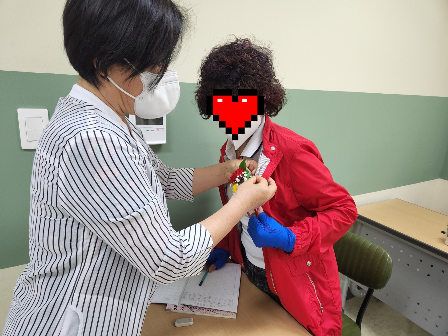 카네이션을 달아드리고, 복지관 이용자들에게도 카네이션을 전달해드렸습니다.