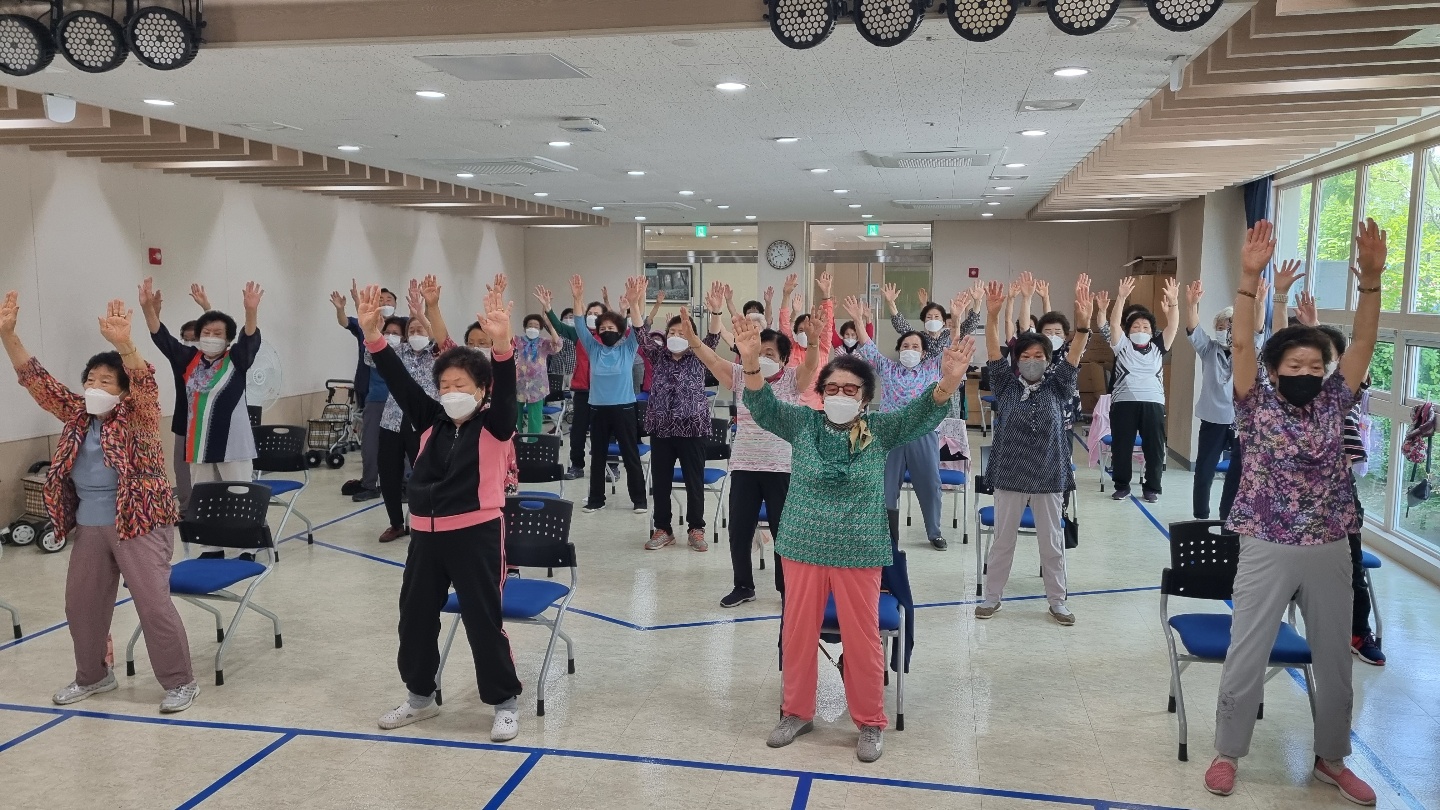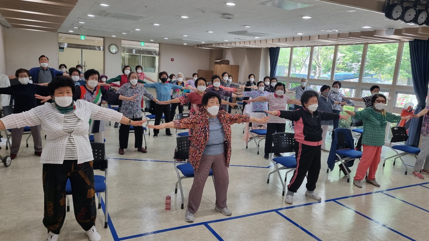부안실버복지관이 2020년 5월 개관하고 어르신들과 처음으로 함께 했던 프로그램인 건강체조가 어느덧 2년이 되었습니다. 건강체조는 어르신들의 체력과 건강상황에 맞게 의자에 앉아서 몸을 풀기도 하고, 신나는 노래에 맞춰 스트레칭을 하면서 어르신들의 건강과 웃음을 함께 챙겨오고 있습니다.