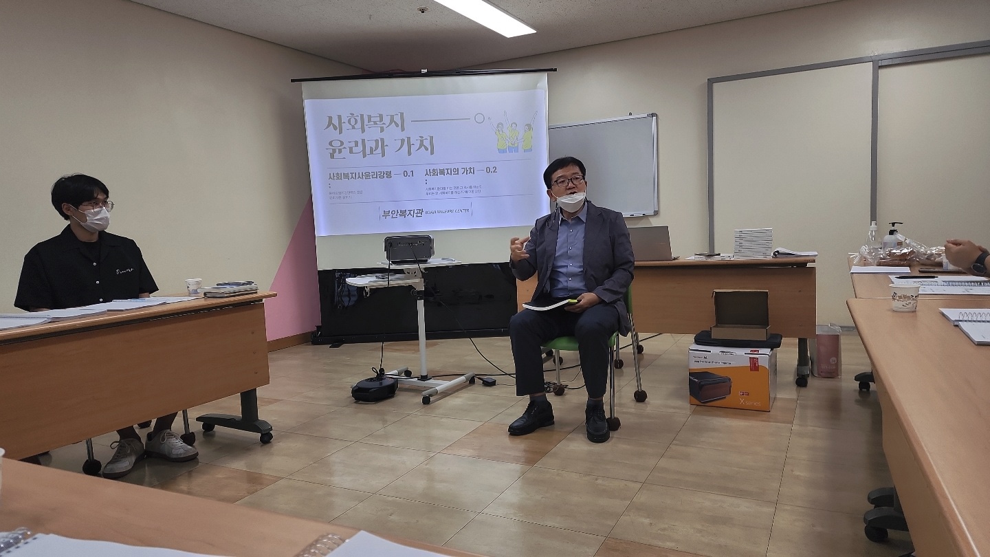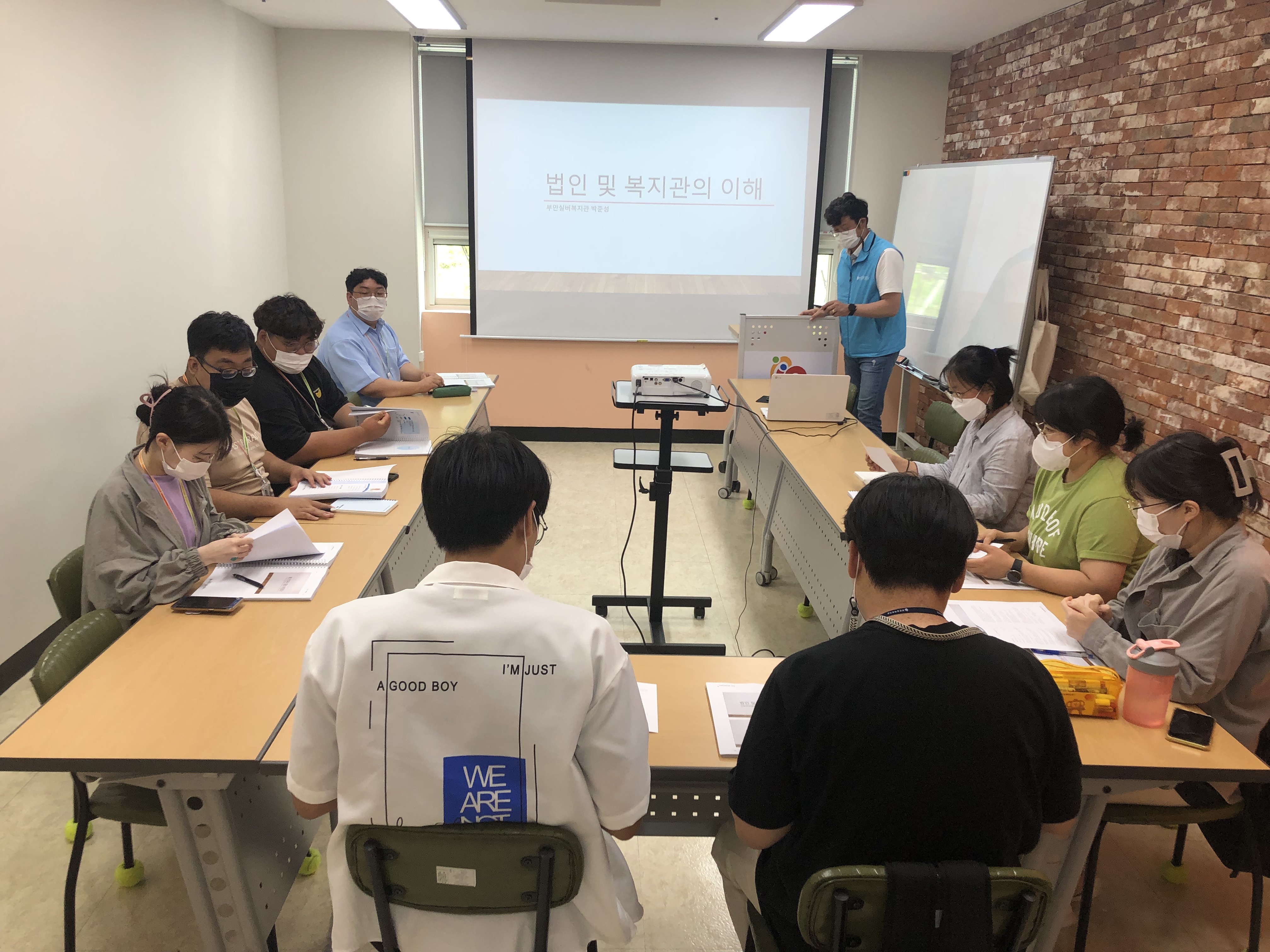 부안실버복지관 2022년 사회복지현장실습이 시작되었습니다. 7월 4일부터 29일까지 진행되며, 1주차 프로그램은 부안복지관 실습생, 신입직원 선생님들과 함께 공통교육으로 진행중에 있습니다. 1주차는 이론교육으로 복지관의 미션과 가치, 사회복지사의 역할과 자세, 재무회계규칙의 이해, 단위사업계획서 작성, 직장인의 예절, 법인 및 복지관의 이해, 공문서 작성의 이해, 개인정보 중요성과 가치, 장애인인식개선교육, MBTI 등의 과정으로 이뤄져 있습니다.