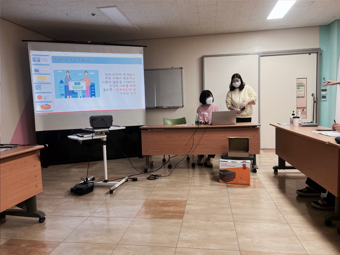 부안복지관 실습생들과 함께 실습을 진행하는 과정에서 처음에는 매우 어색한 관계였지만 장애인 비장애인들이 즐겨하는 스포츠 슐런게임을 하면서 실습생들과 친해지며 각자의 복지관에서 실습하는 것을 응원하는 관계로 발전하게 되었습니다.
