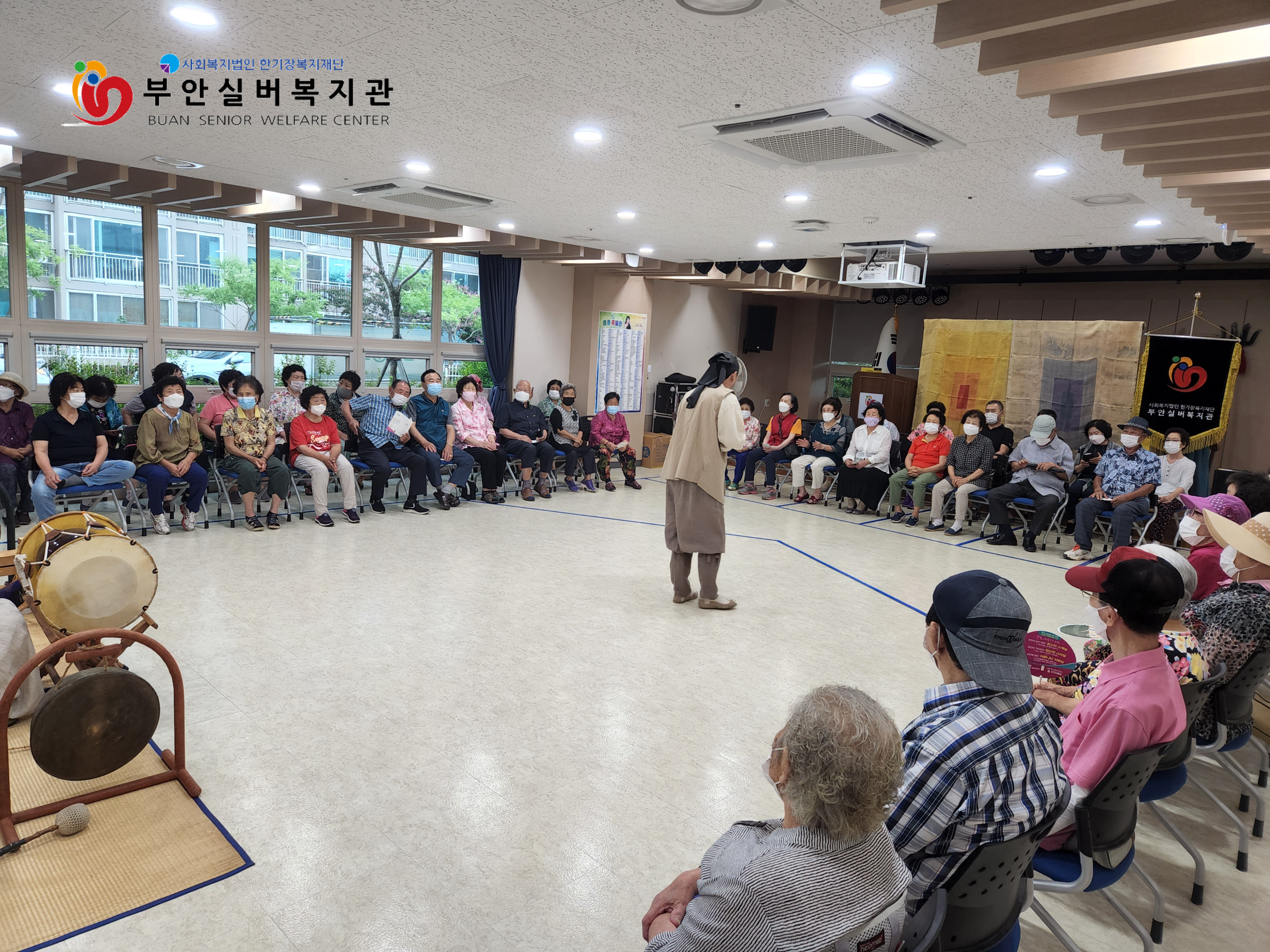 2022년 1차 신나는 예술여행 '청아, 청아, 내딸 청아' 공연이 7월 21일 목요일에 진행되었습니다. 오랜만에 진행된 문화공연에 어르신들의 웃음소리가 공연장을 벗어나 복지관 전체에 퍼졌습니다. 이번 공연은 중간 중간 어르신들의 참여를 유도하여 어르신과 공연패 모두가 하나가 되는 즐거운 시간이었습니다.