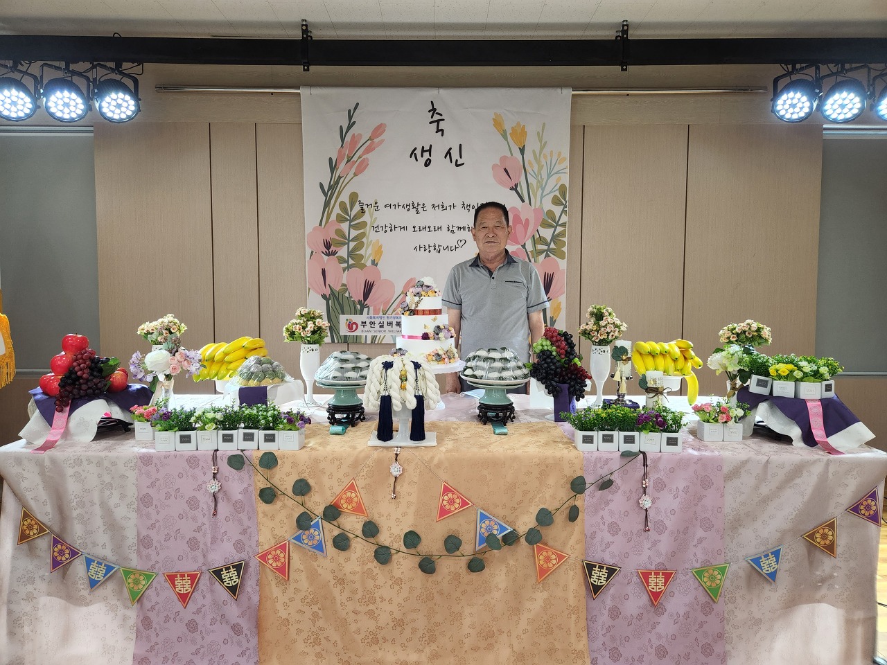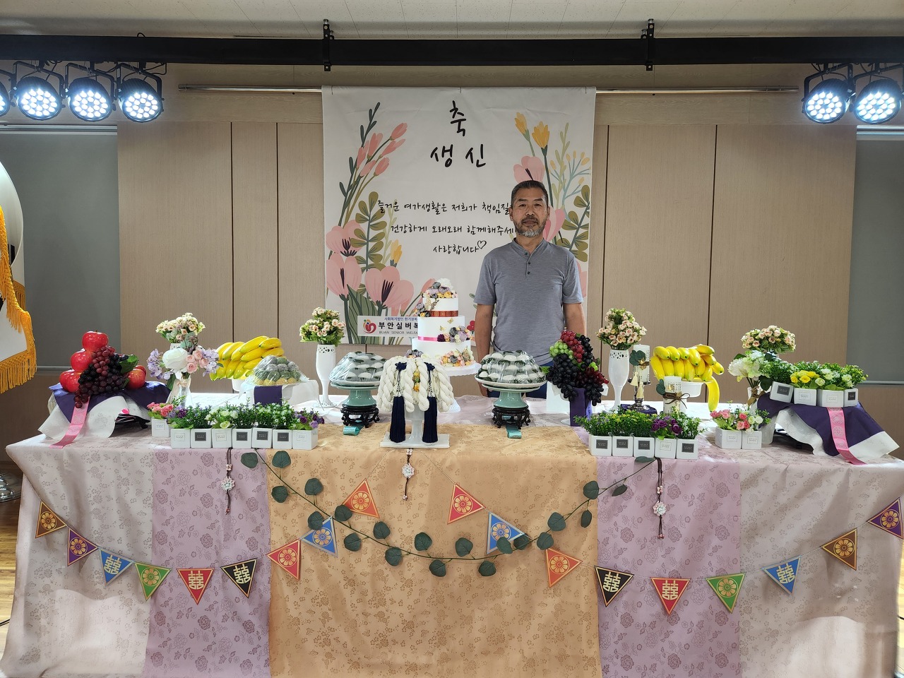 22년 전라북도사회복지공동모금회 신청사업 < 어르신들의 고독사 예방을 위한 이웃관계 안전망 만들기 프로그램 "동고동락, 다시봄"  > 사업으로 8월 생신인 홀몸 어르신들을 모시고 생신잔치를 7월 29일 진행했습니다. 코로나19로 인하여 예전처럼 음식을 나누어 먹는 잔치는 아니었지만, 생신을 맞은 어르신들이 초대한 손님들과 관장님의 축하 인사와 생신선물도 받으며 즐거운 시간을 보내셨습니다.