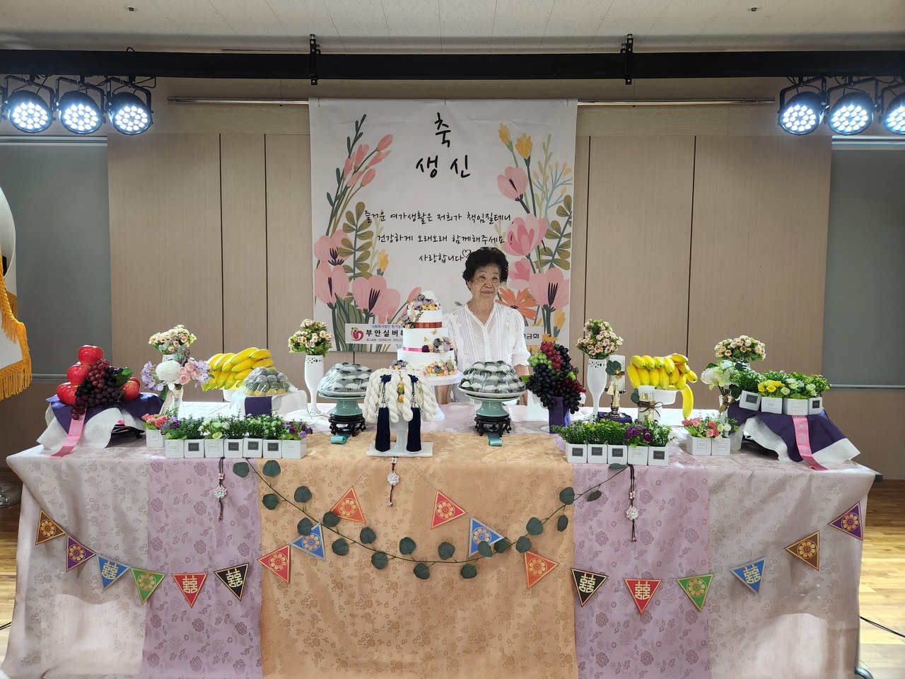 특히, 아리울칼립소의 공연은 잔치 분위기를 북돋웠고 생신상 앞에서 촬영한 사진을 자녀들에게 보여주고 싶다고 하시고, 준비한 복지관 직원들에게 고맙다는 인사도 하셨습니다.  홀로 생신을 맞으며 외로움을 느낄 어르신들이 이웃의 정을 전달받고 다른이에게 또다시 함께 축하할 수 있는 생신상 차림 행사가 되었으면 하는 바람입니다.