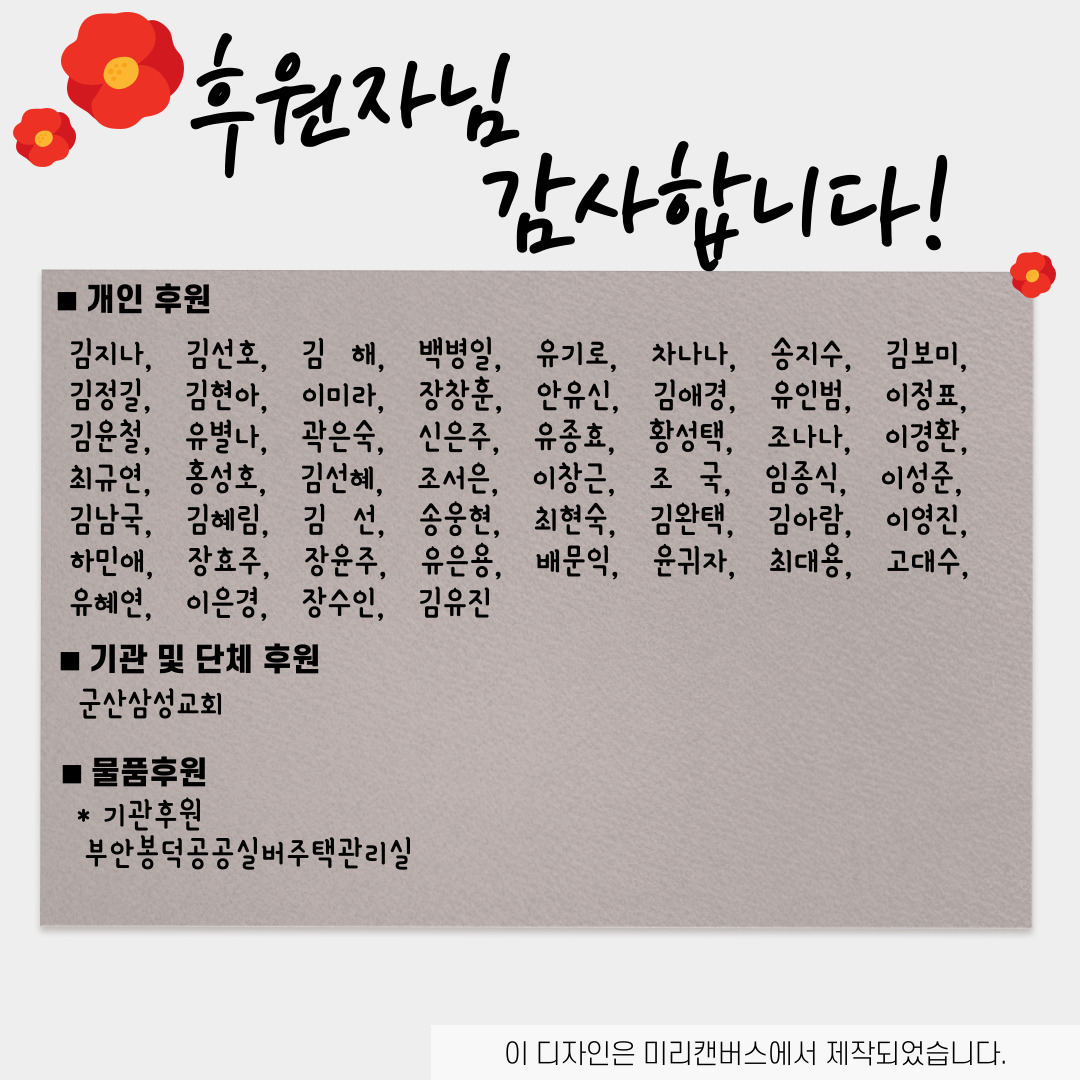 | 후원자님들의 감동적인 메세지가 도착했습니다! (0) | 2020.11.11 |