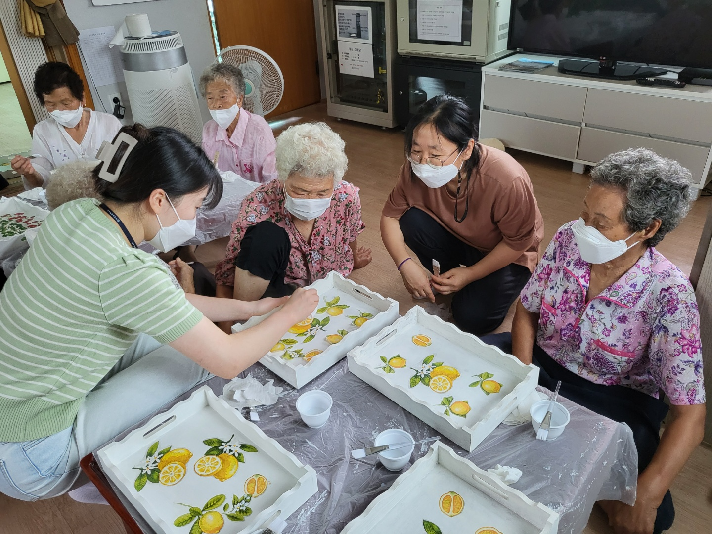 노인복지관 연계사업 실천 과정에 참여하면서 복지관에 방문하시기 어려운 어르신들이 계신 마을에 찾아가 취미·여가 프로그램과 운동처방 프로그램을 진행한다는 점이 인상적이었습니다. 인천여성경로당에 방문하여 운동처방 프로그램에 참관하였습니다. 프로그램을 마친 후 어르신들과 이야기를 나누면서 운동처방 프로그램에 얼마나 만족하는지, 어르신들의 프로그램 지지도가 얼마나 큰지 느낄 수 있었습니다. 그리고 장서경로당에 방문하여 어르신들이 냅킨아트 공예에 참여하실 수 있도록 도와드렸습니다. 어르신들이 즐겁게 활동에 참여하는 모습을 보고, 완성품을 어떻게 사용하실지 이야기하면서 자연스럽게 어르신들과 대화를 나눌 수 있는 기회였습니다.