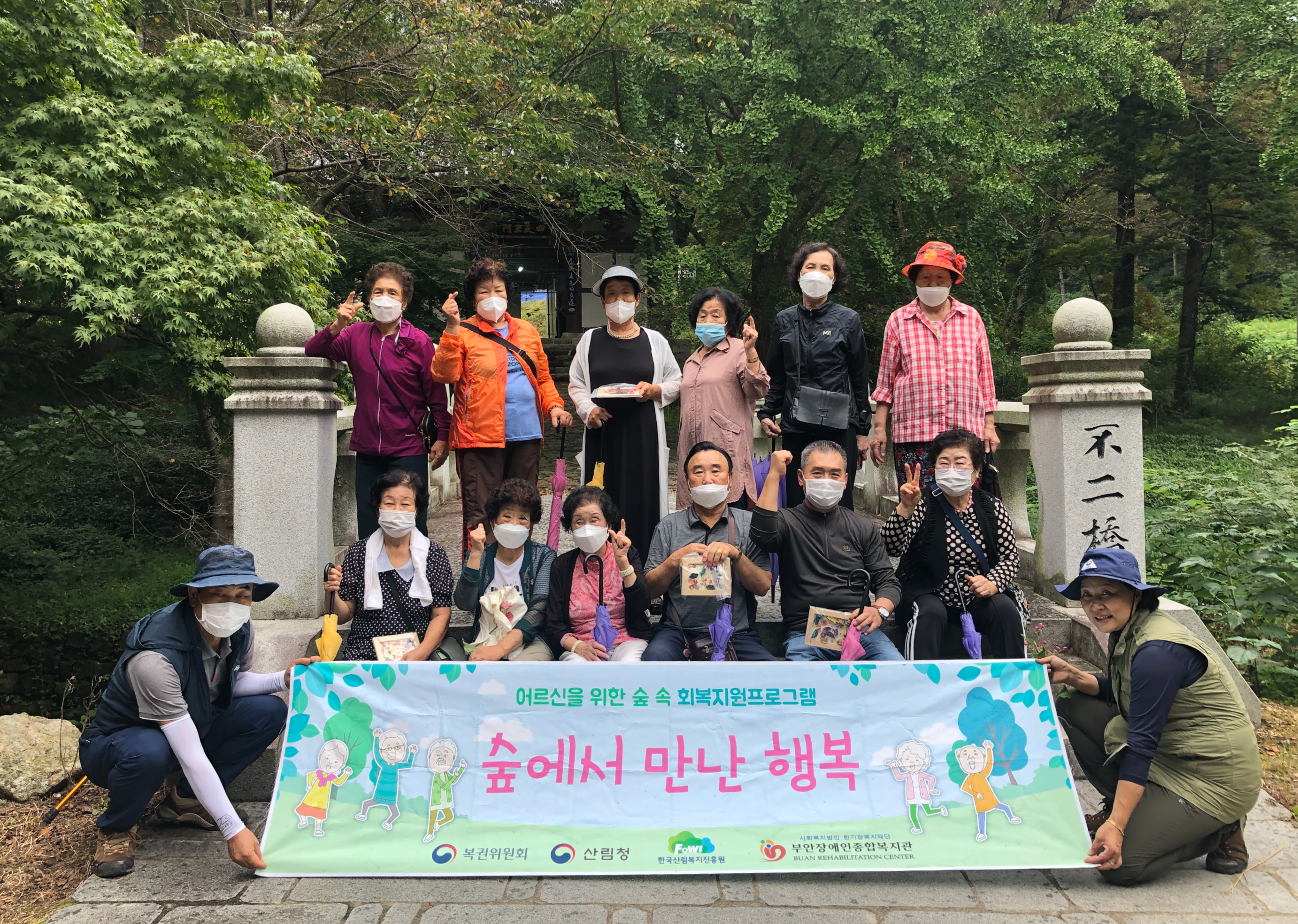 산림청, 한국산림복지진흥원, 복권위원회 복권기금으로 지원하고, 부안장애인종합복지관에서 주관하는 어르신을 위한 회복 지원 프로그램 ‘숲에서 만난 행복’에 참여하였습니다. 부안복지관과 협력사업으로 3회기(09. 13. ~ 27. 매주 화요일)에 걸쳐 진행됩니다.