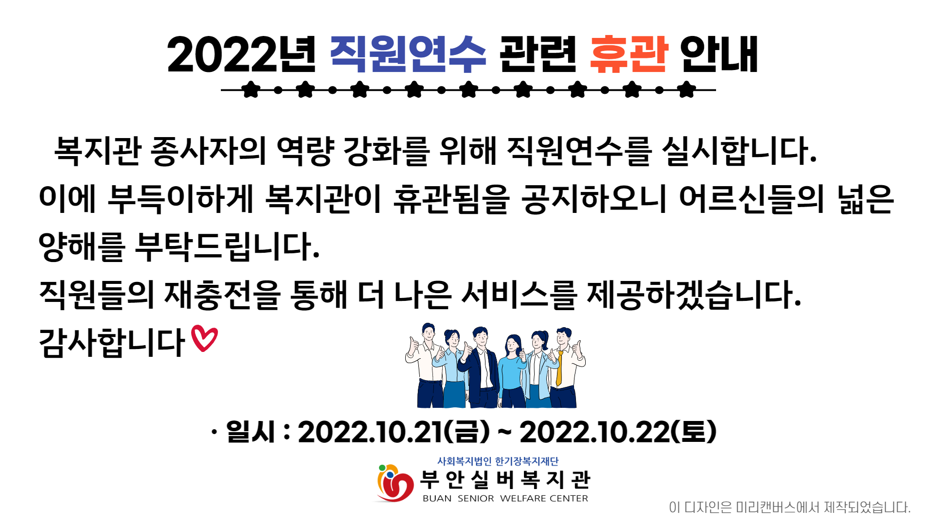 | 부안실버복지관 사회복지사(계약직) 채용공고 (0) | 2022.11.09 |