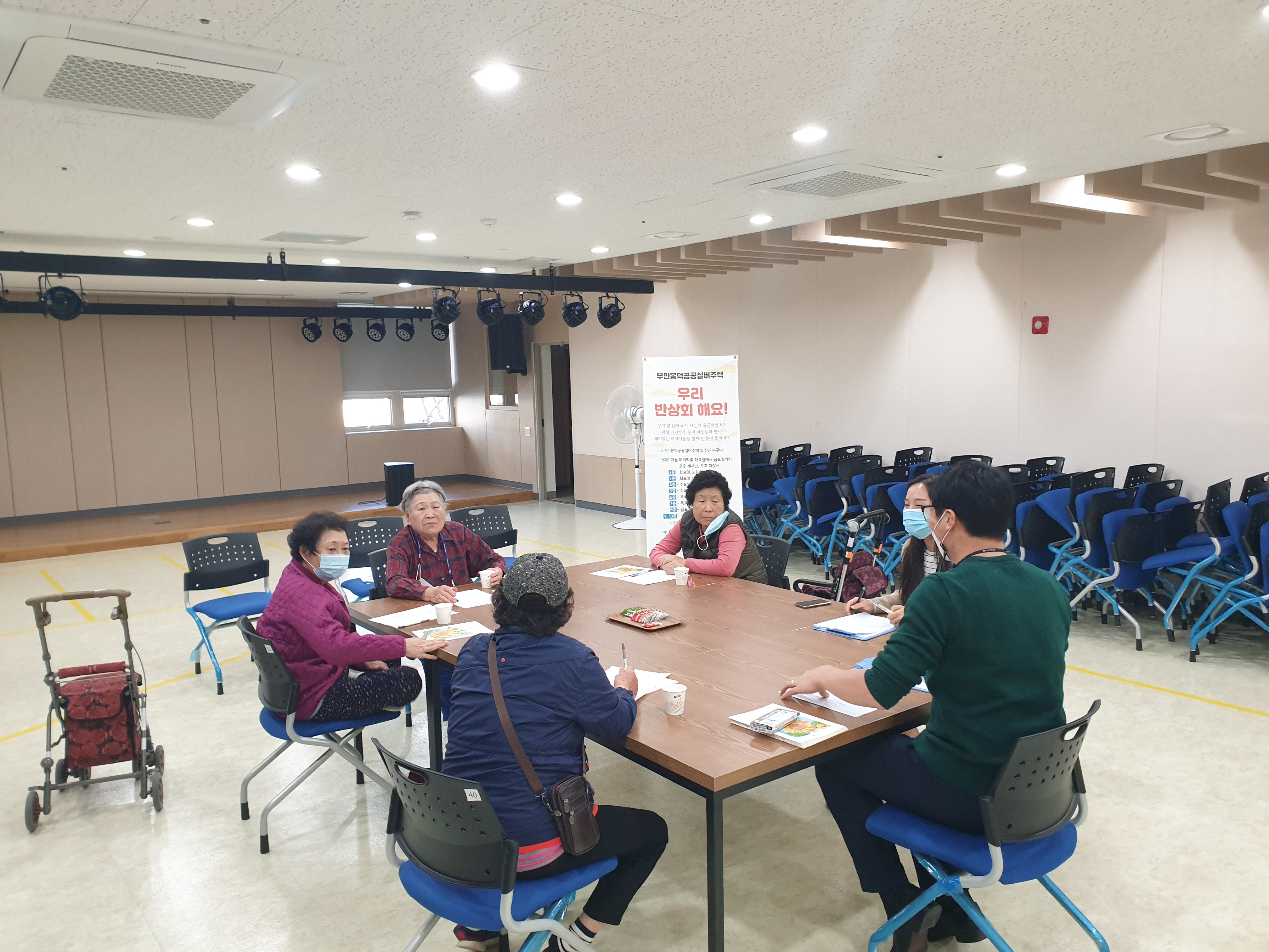 로비에서 담소를 나누시던 어르신들이 '우리 반상회해요'라는 홍보물에 관심을 가지십니다. 반상회가 무엇인지? 어떻게 진행하는지? 누굴만나는지? 궁금해 하시는게 너무 많으신 것 같습니다.