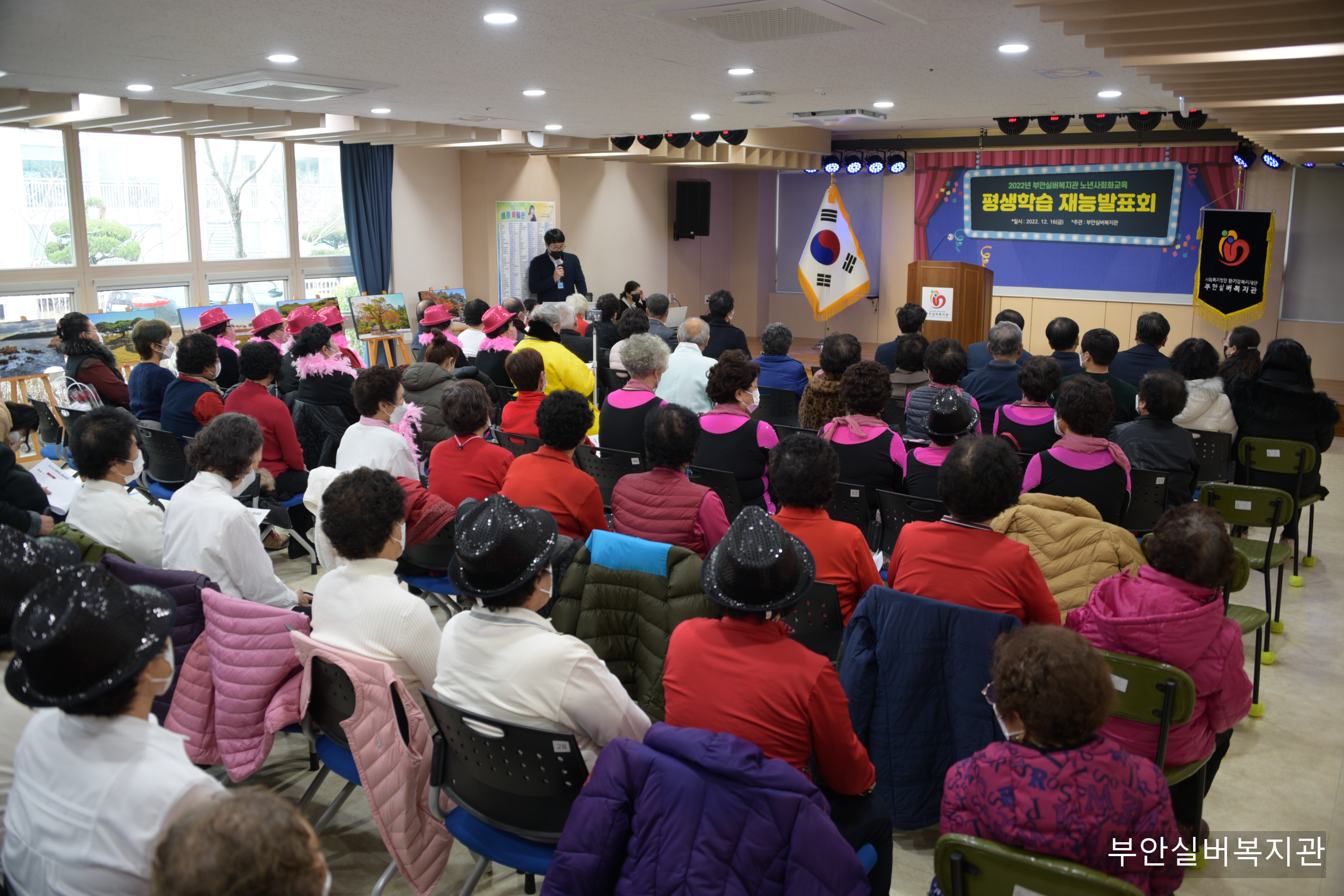 "2022년 어르신 평생학습 재능발표회"가 12월 16일 120여명의 어르신과 내빈이 참석한 가운데 진행되었습니다.