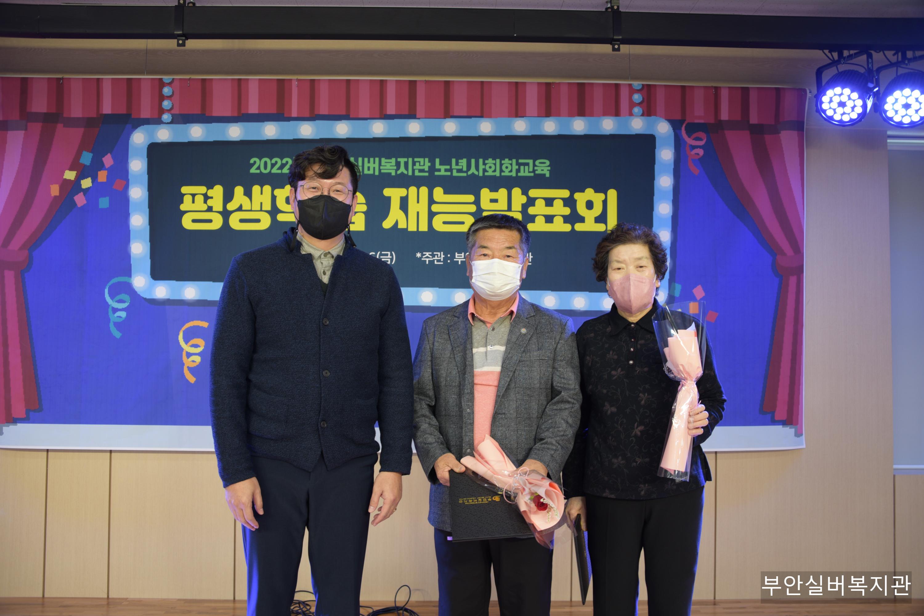 노년사회화교육 평생학습 재능발표회는 정가(시조), 건강체조, 노래, 라인댄스, 생활체조 발표와 부풍율회, 하모니카 축하공연 등이 진행되었으며, 원예, 한글, 사진, 노인 인식개선 활동 등은 1층 로비에 작품으로 전시하였고, 스마트폰반은 영상으로 활동영상을 보여줬습니다. 특별히, 바리스타반은 그동안 배웠던 기량을 뽐내 직접 내린 커피를 어르신들에게 제공하는 등 배움을 나눌 수 있는 소중한 시간이 되었습니다.