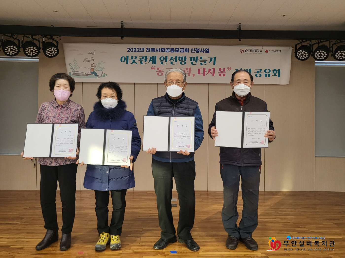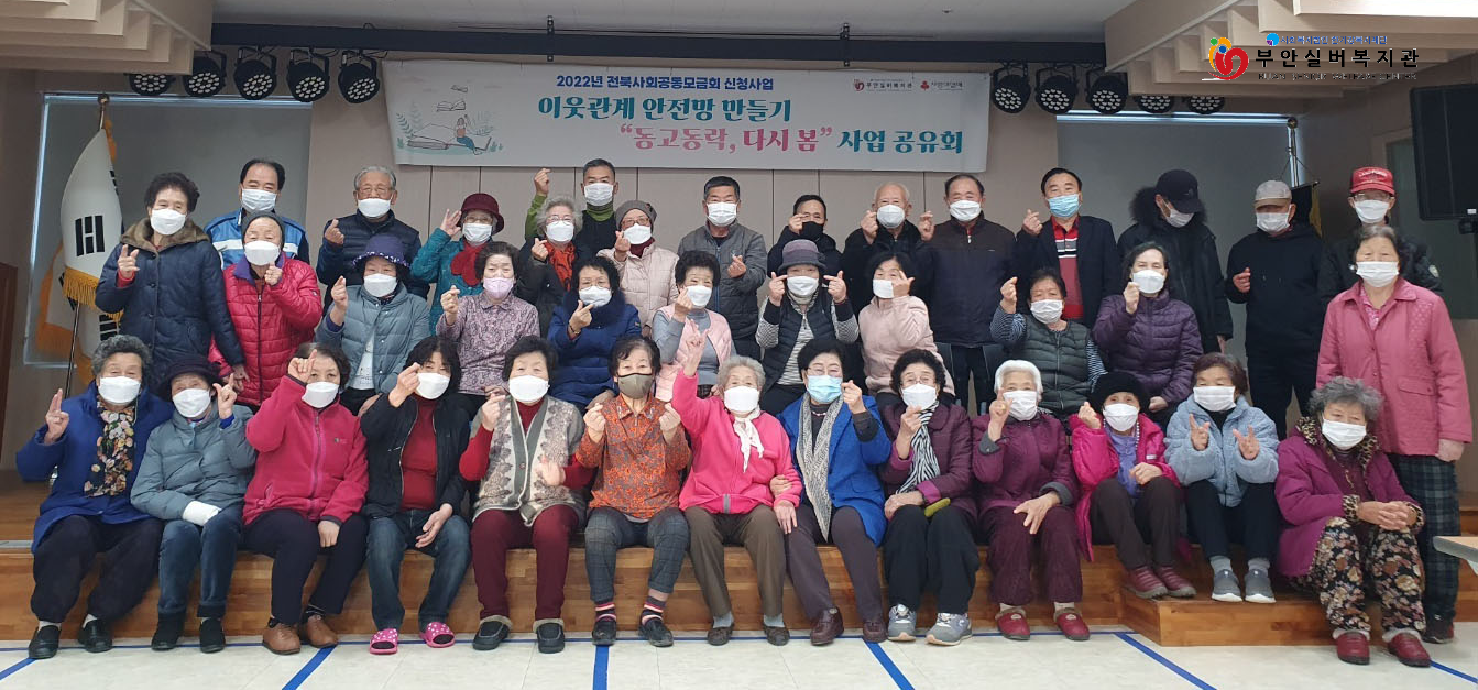 2022 전라북도사회복지공동모금회 지원사업인 어르신들의 고독사 예방을 위한 이웃 관계 안전망 만들기 사업 ‘동고동락, 다시 봄’ 사업 성과 공유회를 26일에 진행했습니다.