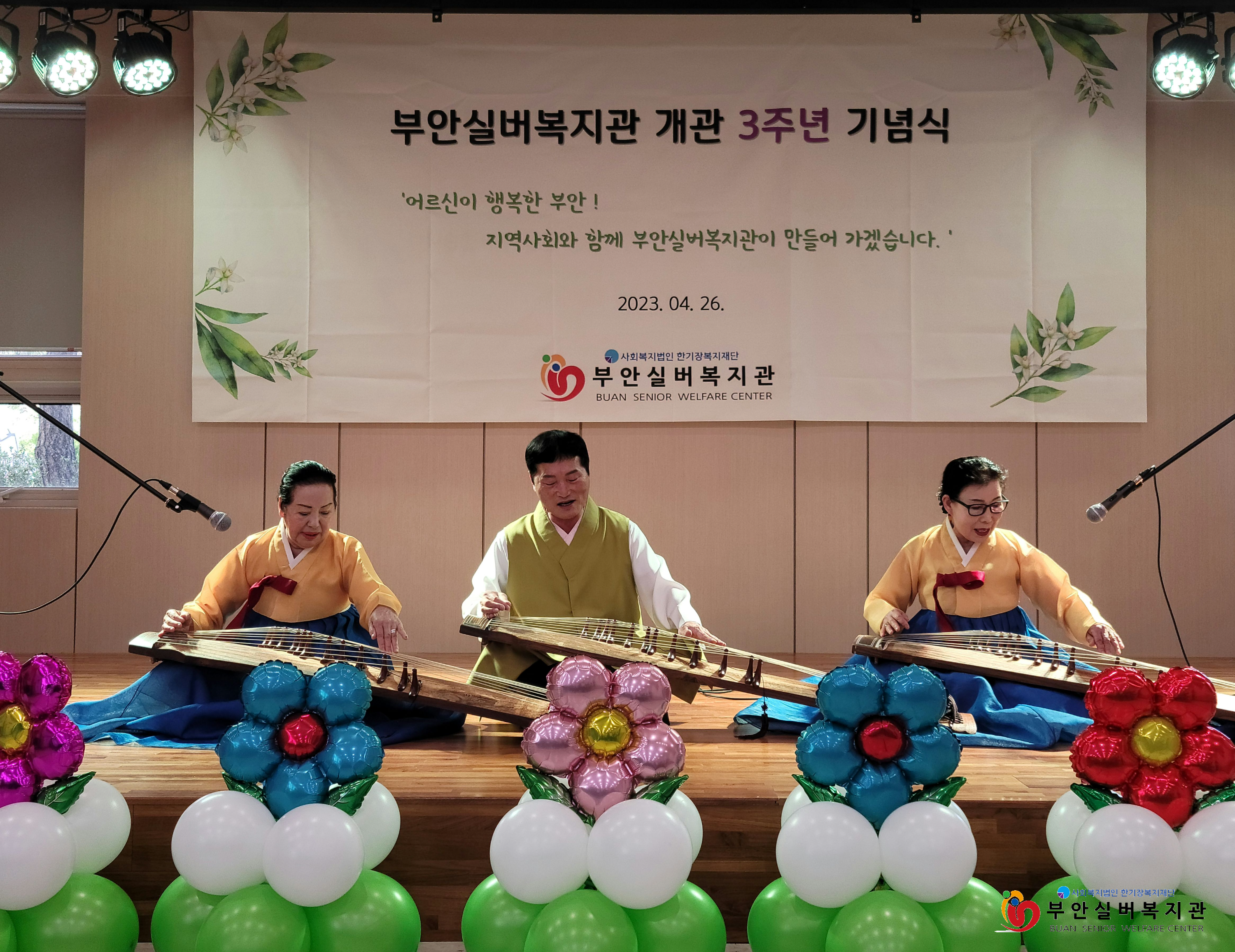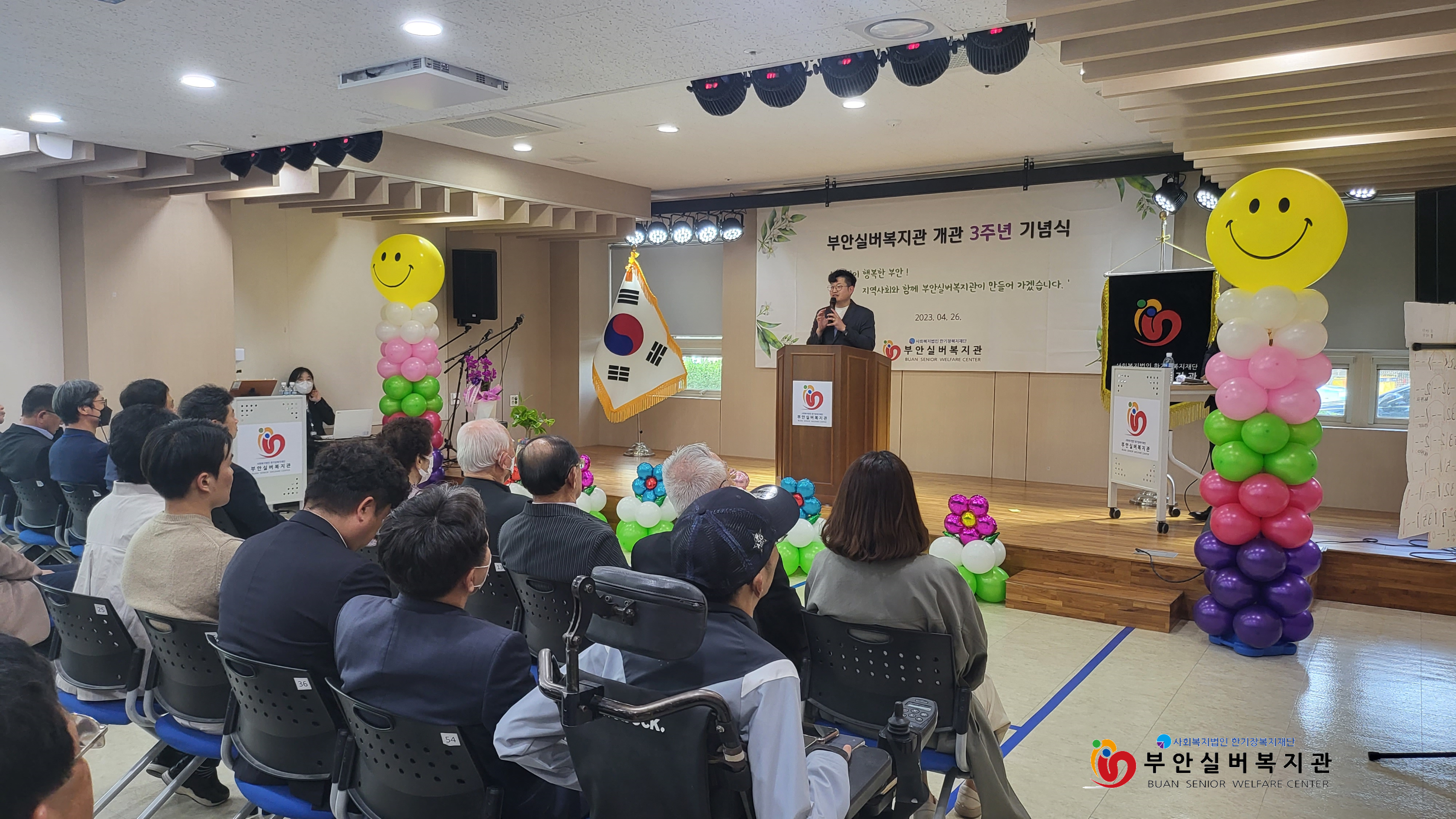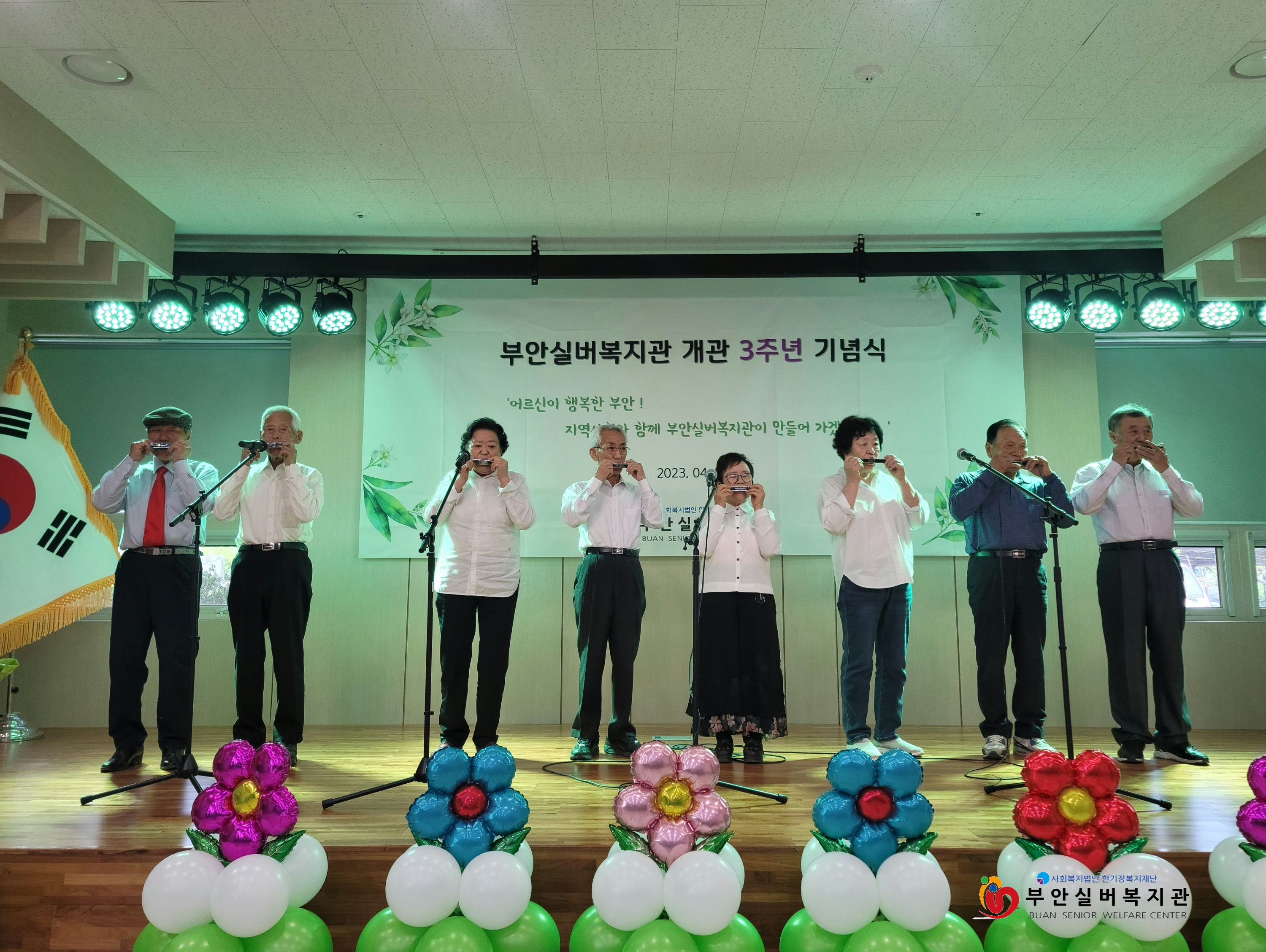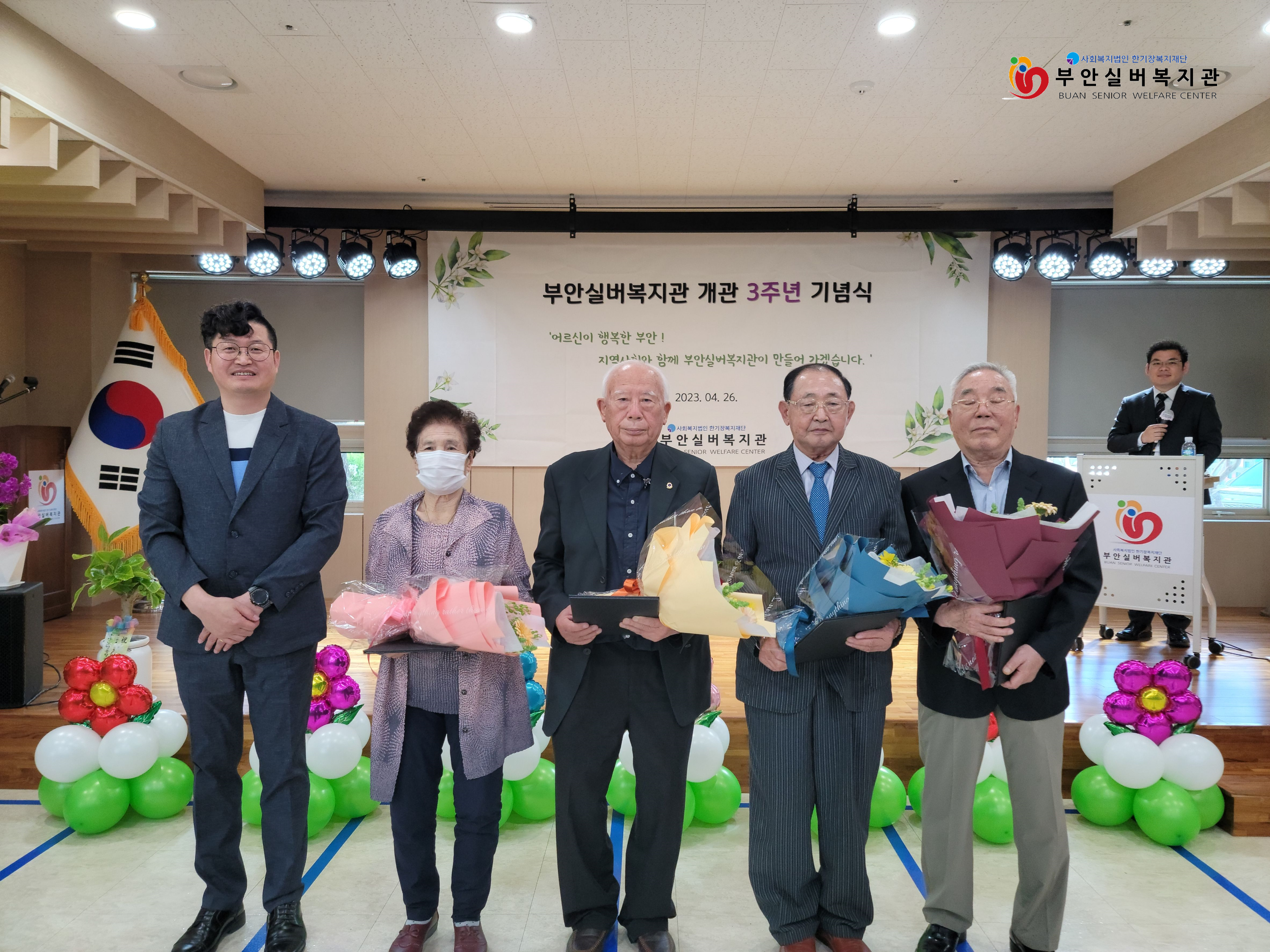 부안실버복지관은 26일 개관 3주년을 맞아 ‘어르신이 행복한 부안! 지역사회와 함께 부안실버복지관이 만들어가겠습니다.’라는 주제로 기념행사를 진행했습니다.