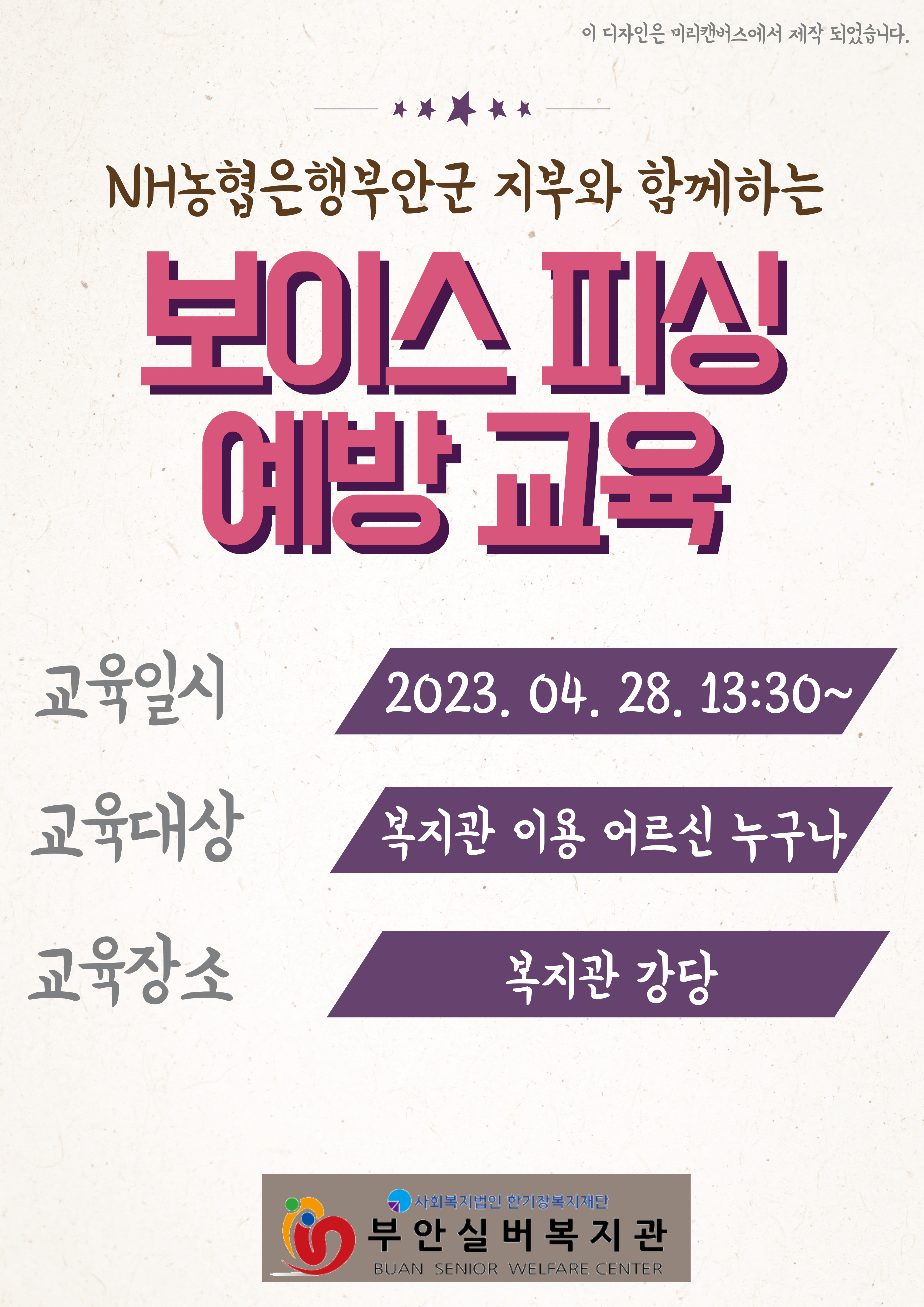 | 부안실버복지관 개관 3주년 기념행사 안내 (2) | 2023.04.11 |