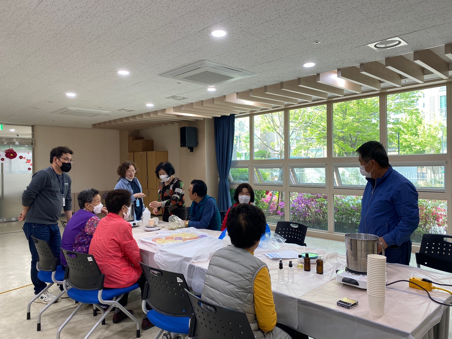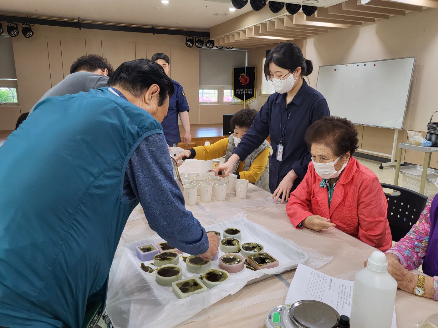 비누만들기 층별 그룹활동은 4그룹으로 나뉘어 진행됩니다. 남은 7개 층 3그룹 어르신들의 층별 그룹활동엔 어떤 재미난 이야기들이 오고 갈지 기대하며, 많은 어르신들의 참여 부탁드립니다.