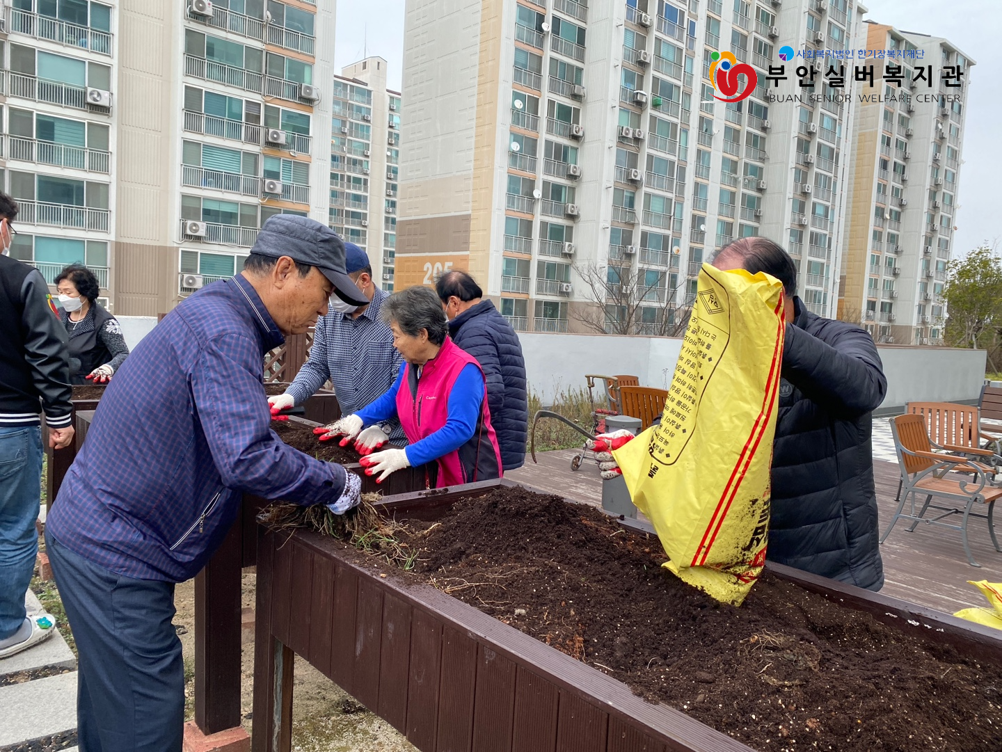 2023년 전북사회복지공동모금회 신청사업 '동고동락, 다시 봄' 이웃관계안전망 만들기 사업의 하나인 층별 공동체활동으로 공공실버주택 2층 텃밭에 첫 작물을 심었습니다.