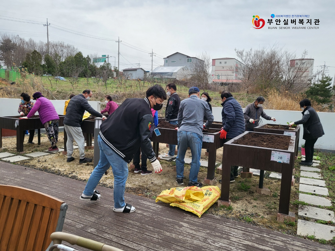 2023년 전북사회복지공동모금회 신청사업 '동고동락, 다시 봄' 이웃관계안전망 만들기 사업의 하나인 층별 공동체활동으로 공공실버주택 2층 텃밭에 첫 작물을 심었습니다.