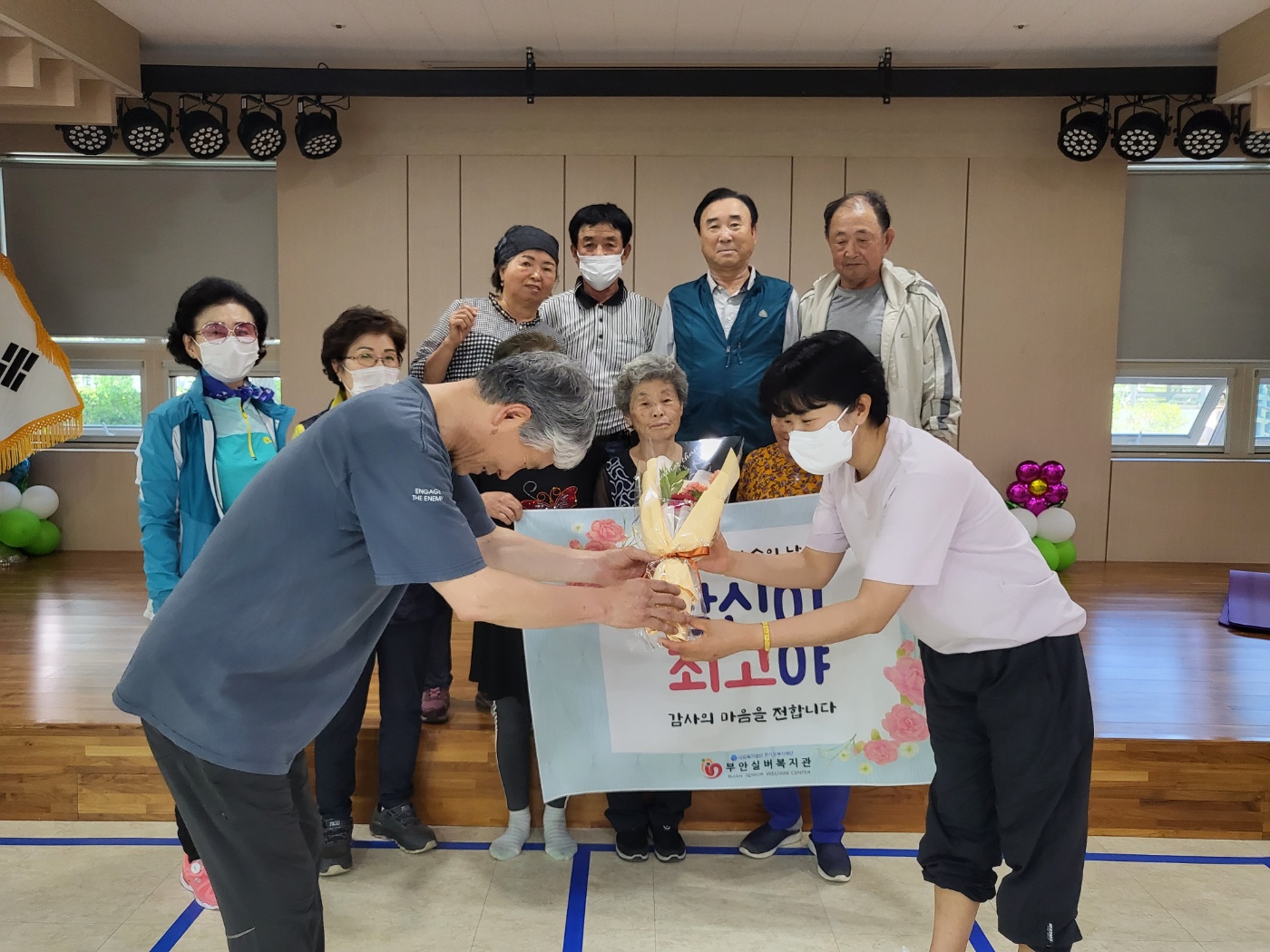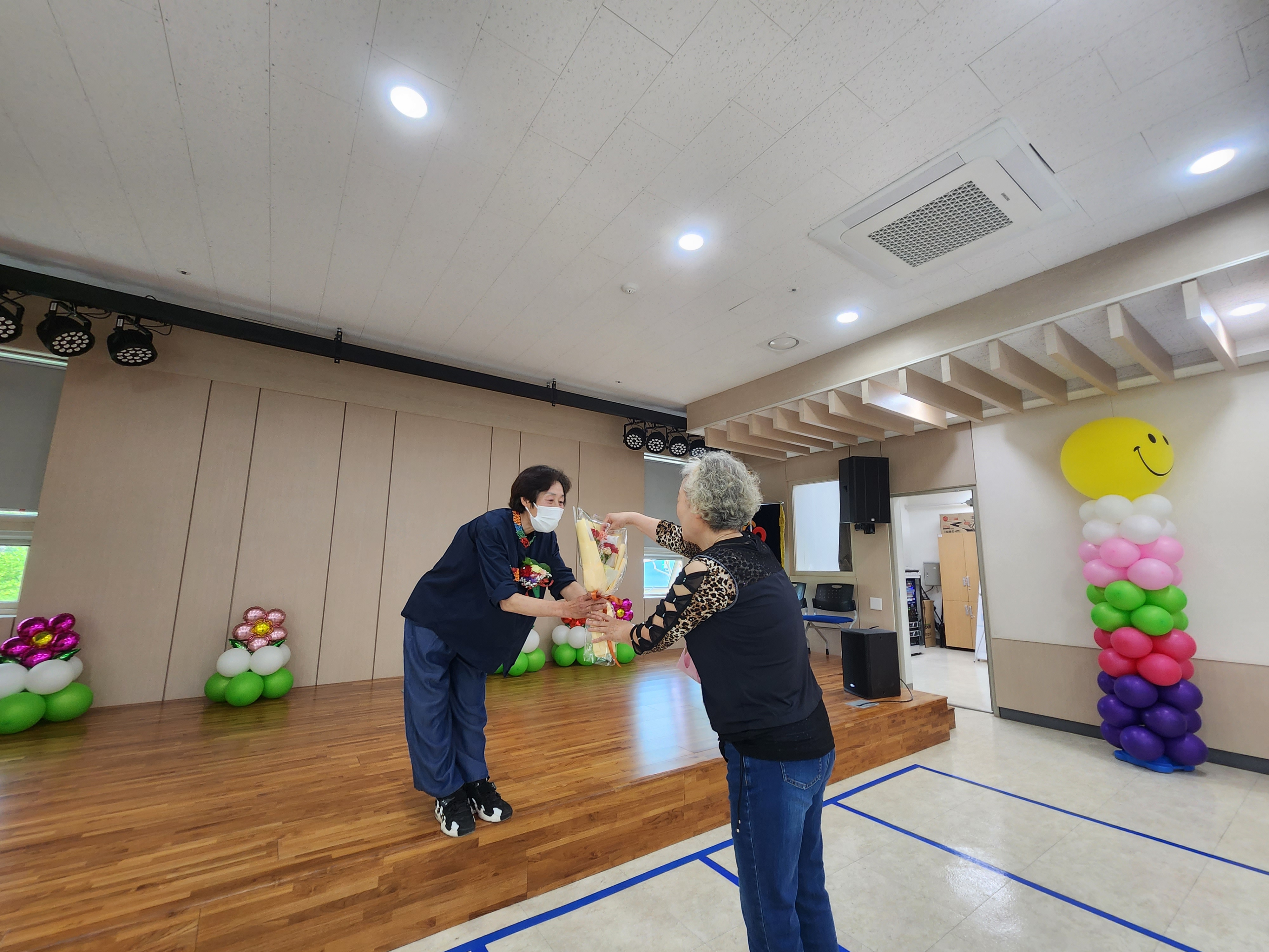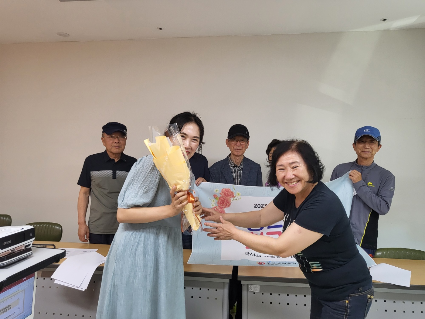 첫 날인 오늘 건강체조, 라인댄스, 사진교실, 매트체조 프로그램 참여 어르신들이 선생님들에게 꽃과 함께 감사의 마음을 전했습니다. 어르신과 강사님 모두 즐거워 하시며, 남은 2023년도 잘 지도 부탁한다고 이야기했습니다.  스승의 날 행사 '당신이 최고야'는 19일(금)까지 스승의날 주간으로 계속 진행될 예정입니다. 오늘 찾아뵙지 못한 프로그램은 스승의 날 주간에 찾아뵙고, 감사인사 전달하도록 하겠습니다.
