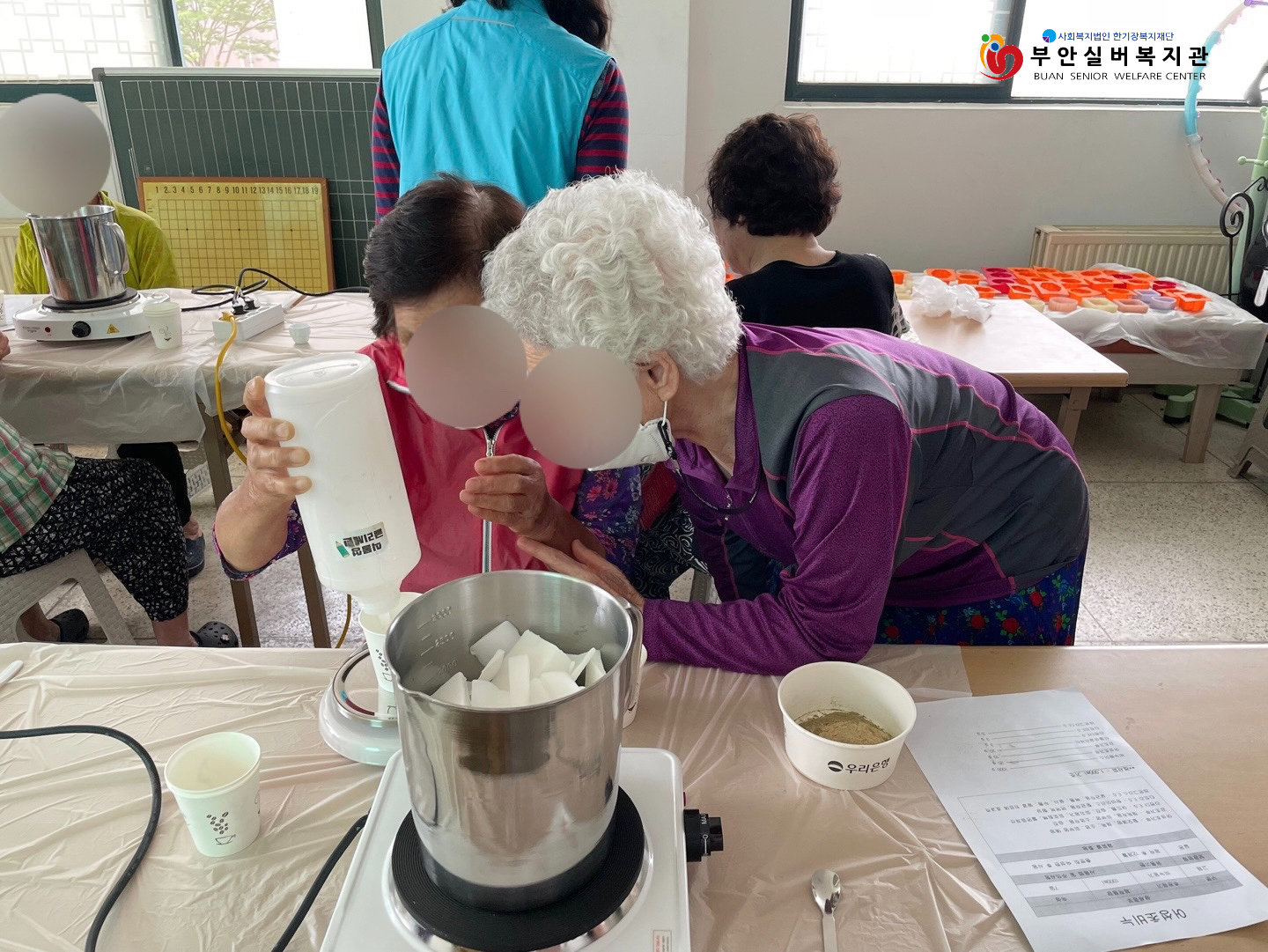 어르신들과 함께 어성초 가루, 감초 가루를 이용한 천연 비누를 만들었습니다. 비누를 만들면서 오랜만에 만난 친구와 근황을 나누는 분들이 계셨습니다. 예전에 빨랫비누를 만들었던 기억이 난다며 즐겁게 참여하는 분들도 계셨습니다. 김OO 어르신은 몸이 좋지 않아 집에만 있어 답답했는데, 다른 어르신들과 함께 시간을 보낼 수 있어 즐거웠다고 말씀하셨습니다. 이날 만든 비누는 본인이 사용하기도 하지만, 이웃들의 안부를 묻고 근황 살핌도 함께 진행할 수 있도록 이웃을 위한 선물로 활용하기로 했습니다.