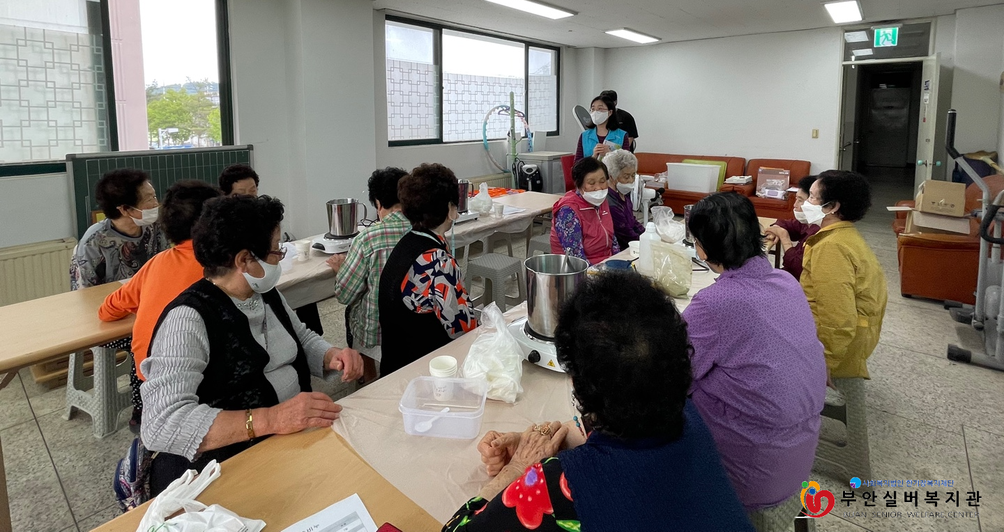 어르신들과 함께 어성초 가루, 감초 가루를 이용한 천연 비누를 만들었습니다. 비누를 만들면서 오랜만에 만난 친구와 근황을 나누는 분들이 계셨습니다. 예전에 빨랫비누를 만들었던 기억이 난다며 즐겁게 참여하는 분들도 계셨습니다. 김OO 어르신은 몸이 좋지 않아 집에만 있어 답답했는데, 다른 어르신들과 함께 시간을 보낼 수 있어 즐거웠다고 말씀하셨습니다. 이날 만든 비누는 본인이 사용하기도 하지만, 이웃들의 안부를 묻고 근황 살핌도 함께 진행할 수 있도록 이웃을 위한 선물로 활용하기로 했습니다.