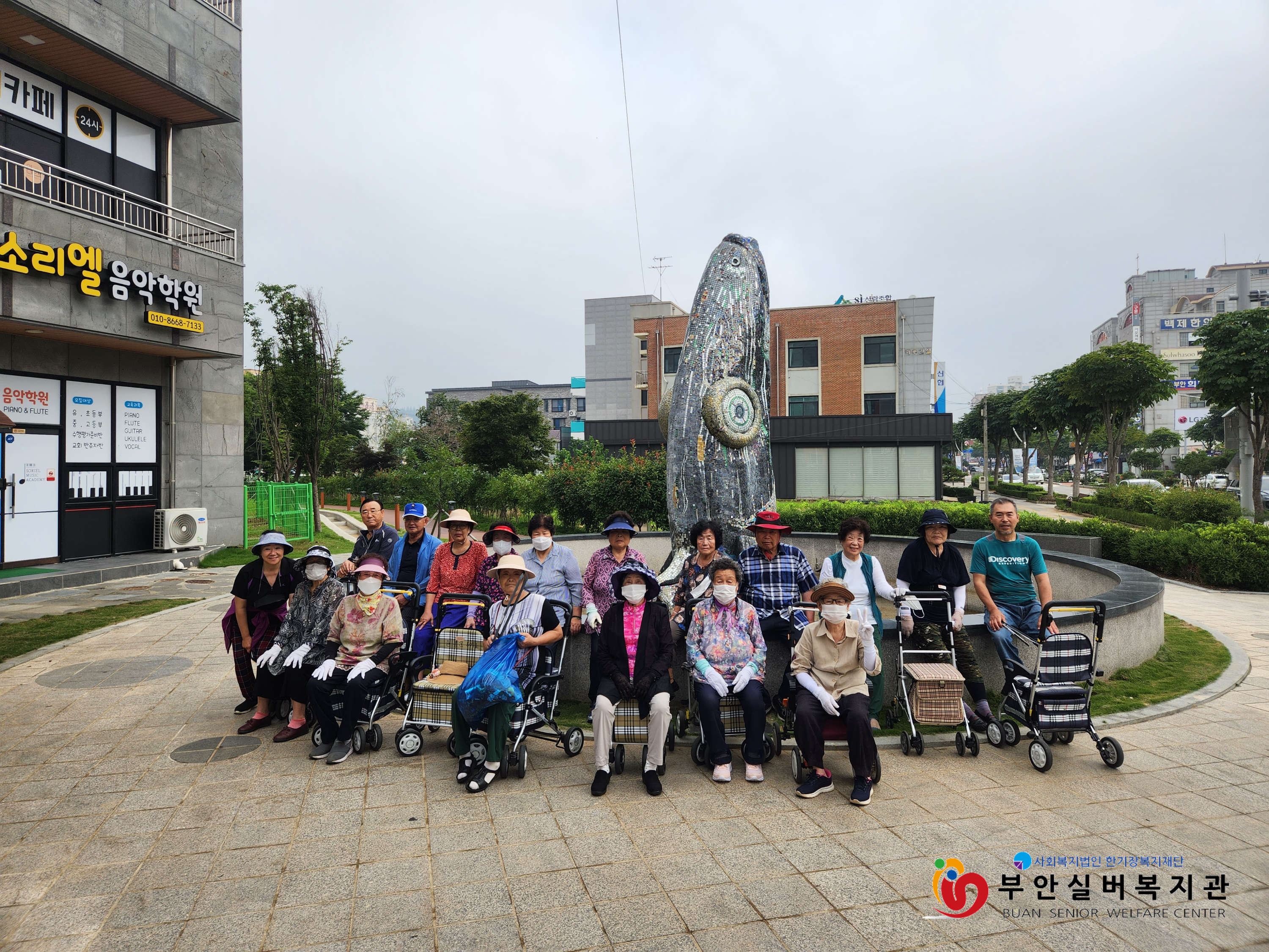 부안실버복지관 ESG* 경영 실천에 동참하고자 '선배시민 마을지킴이 봉사단(이하 선배시민봉사단)'이 쓰담 걷기(플로깅) 3차 활동을 지난 7월 20일 진행했습니다. 부안실버복지관에서 하이마트 사거리(롱롱피쉬 머리분수)까지 걸으면서 쓰레기를 주웠습니다. 봉사단 어르신들은 대부분 실버카를 이용하거나 걷는 것이 불편하시지만, 지역사회의 선배시민으로서 솔선수범하는 마음으로 많이 참석하셨습니다.