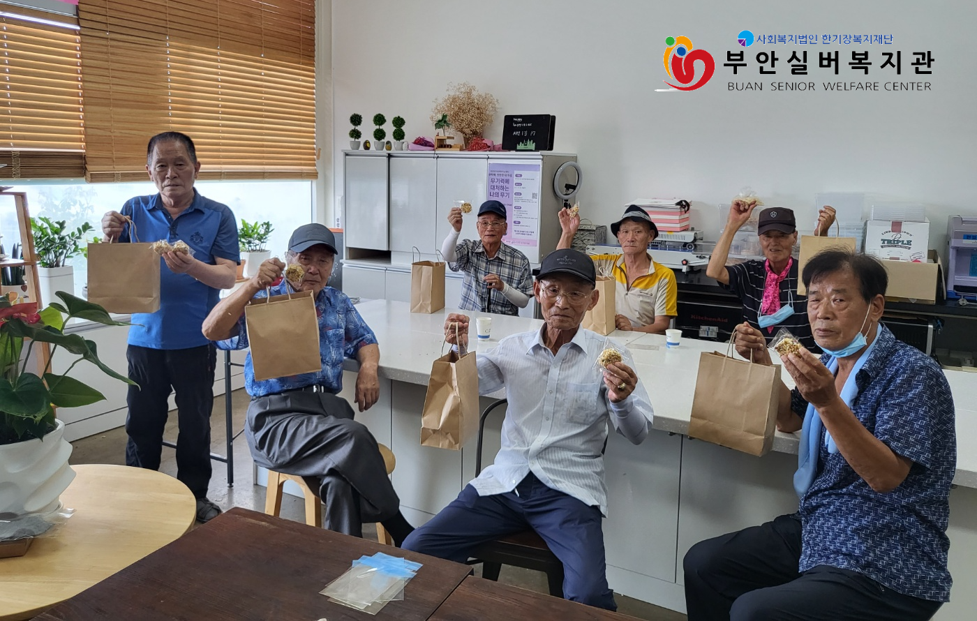2023년 전북사회복지공동모금회 지원사업 남성홀몸어르신 자조모임 '용감한 형제들'이 지난 8월 21일 부안읍에 있는 '행복한 부엌'에서 두 번째 쿠킹클래스를 진행하였습니다. 처음 쿠킹클래스를 제안했을 때 '빵은 별로다' '뭐 그런 걸 한다 하냐' 하시던 분들이 그때의 경험이 좋았는지 두 번째 쿠킹클래스는 "너무 좋다!", "재미있다!" 하셨습니다.