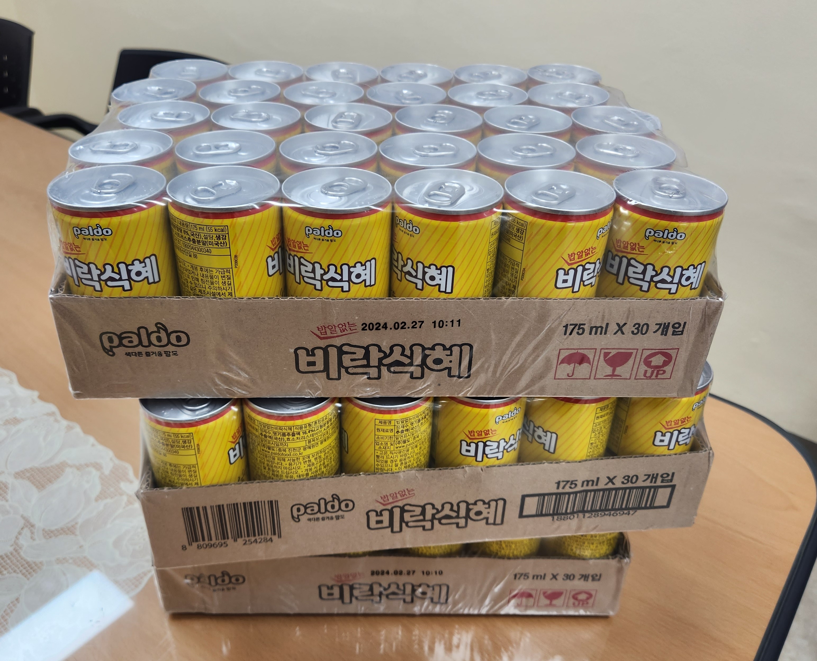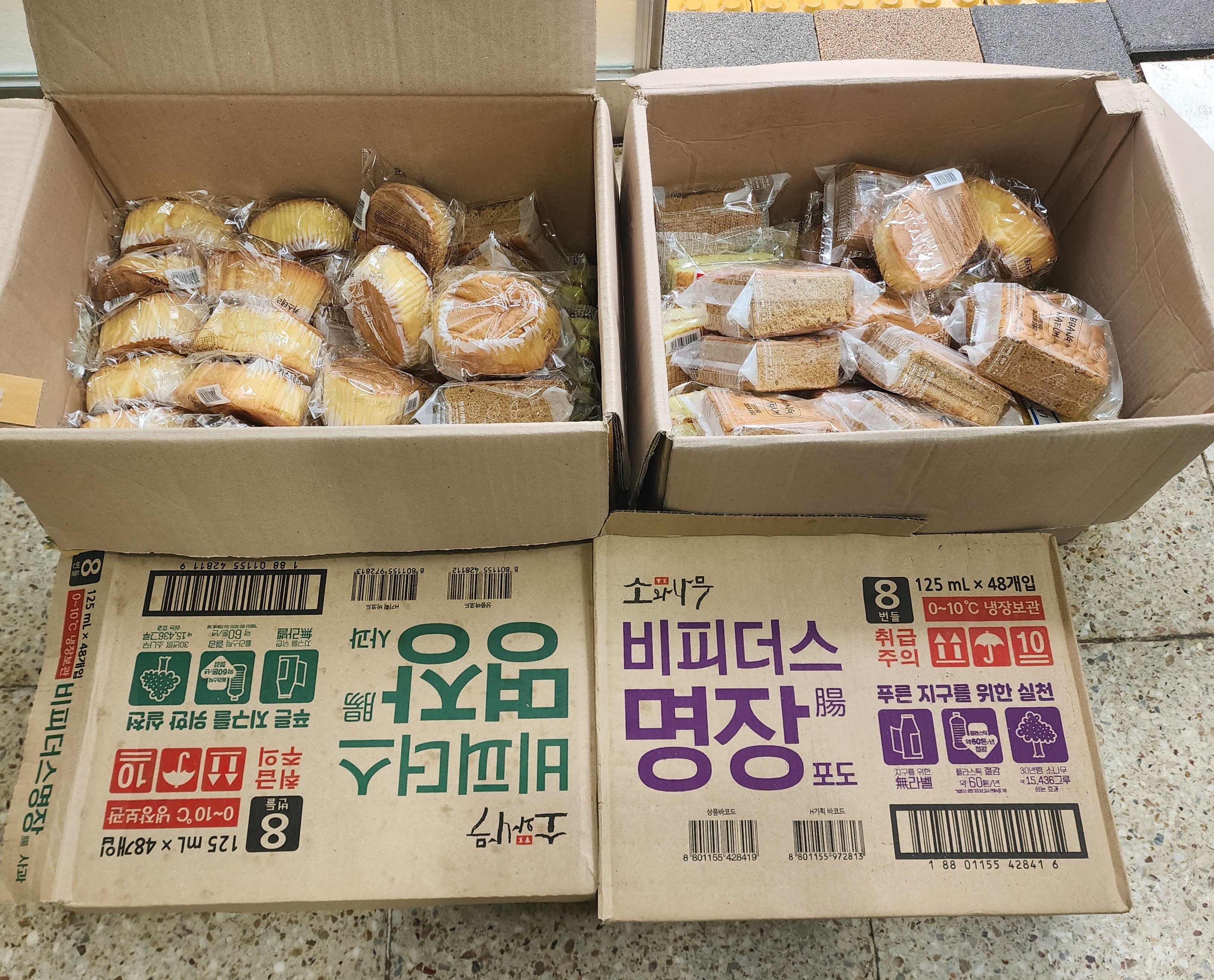 후원물품 : 박** - 떡 2box / 성** - 빵, 음료수 각80개 / 임** - 음료수 3box / 적** - 홍삼캔디